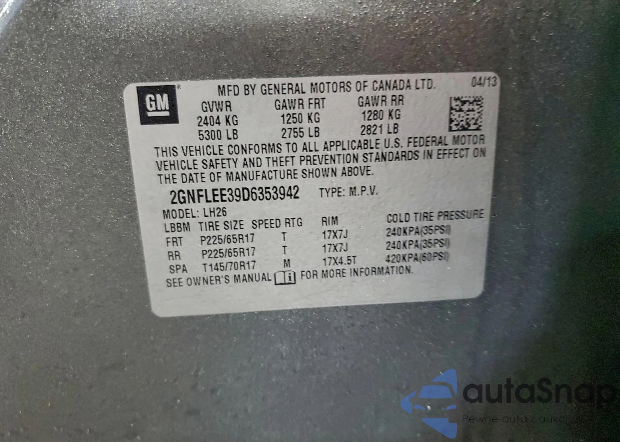 • VIN 2GNFLEE39D6353942