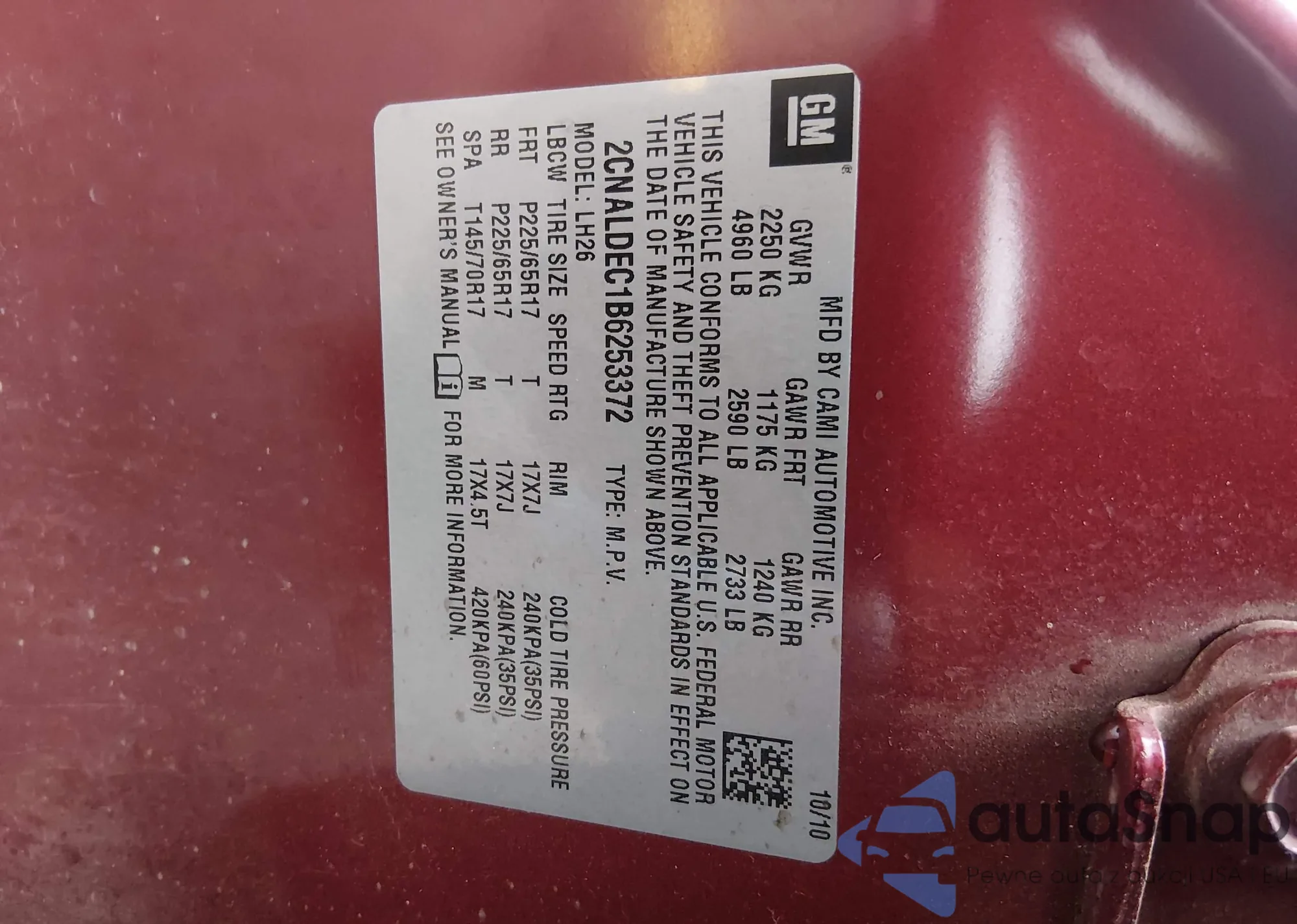 • VIN 2GNFLNEK0D6342495