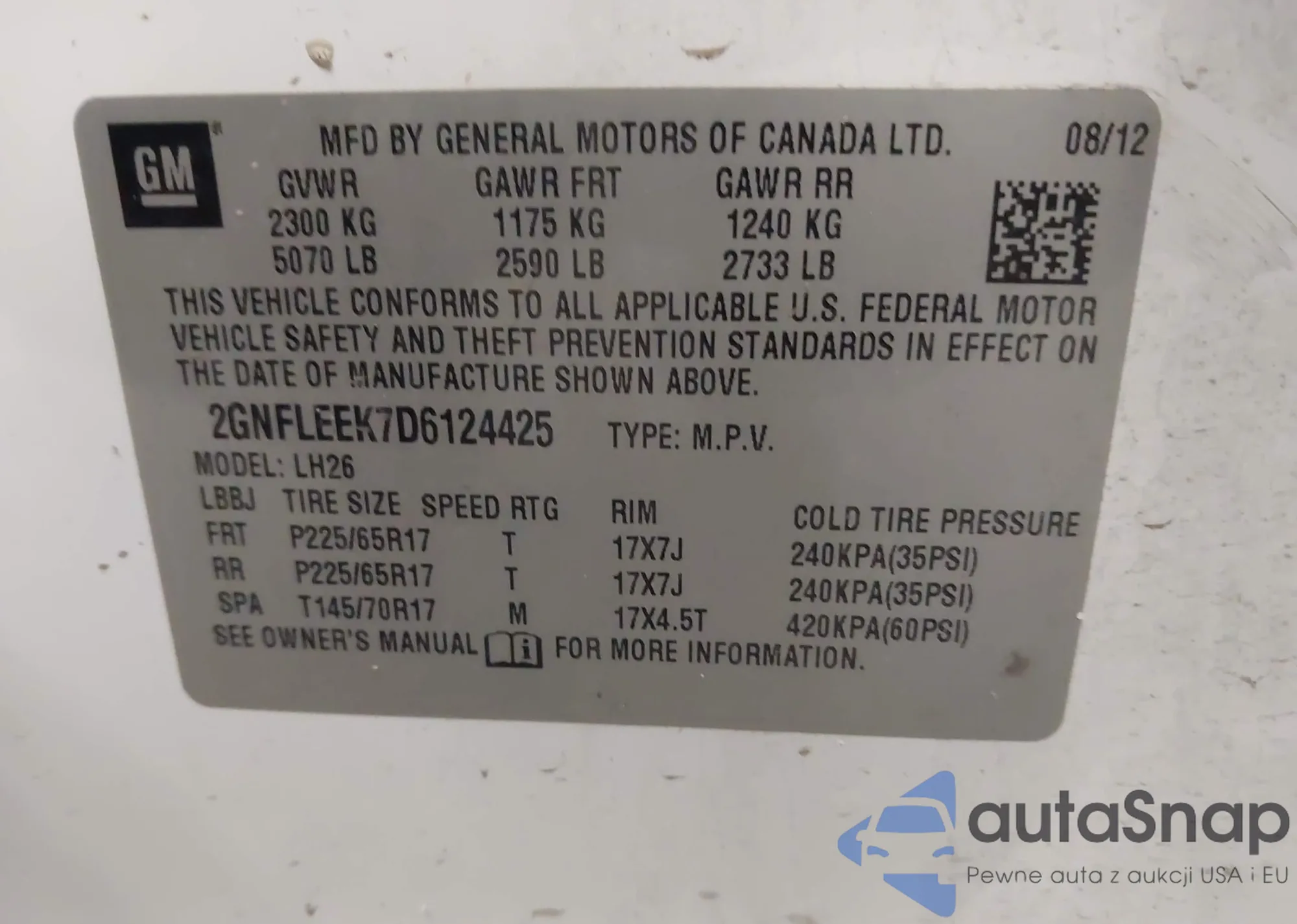 • VIN 2GNFLEEK7D6124425