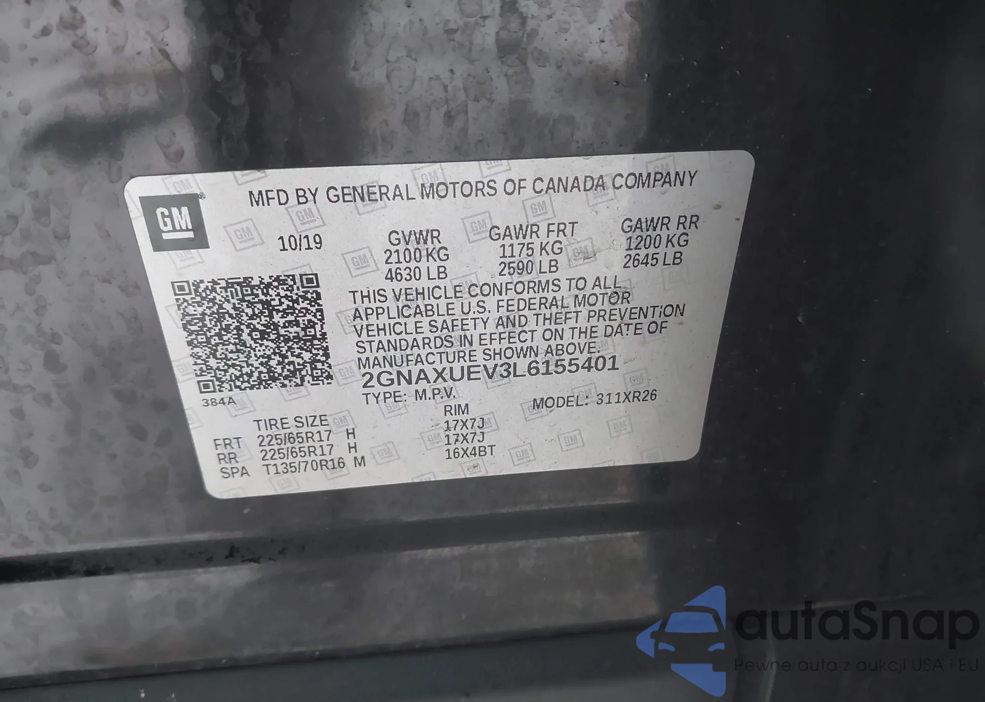 • VIN 2GNAXUEV3L6155401