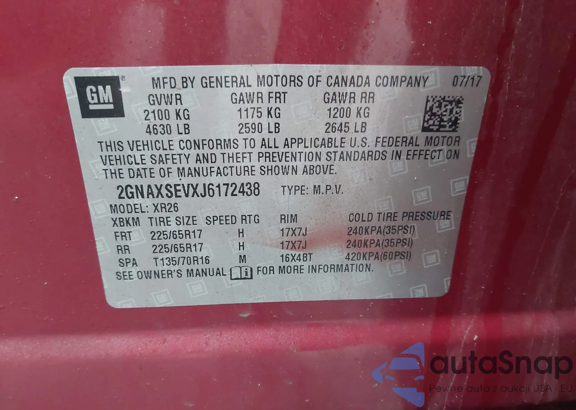 • VIN 2GNAXSEVXJ6172438