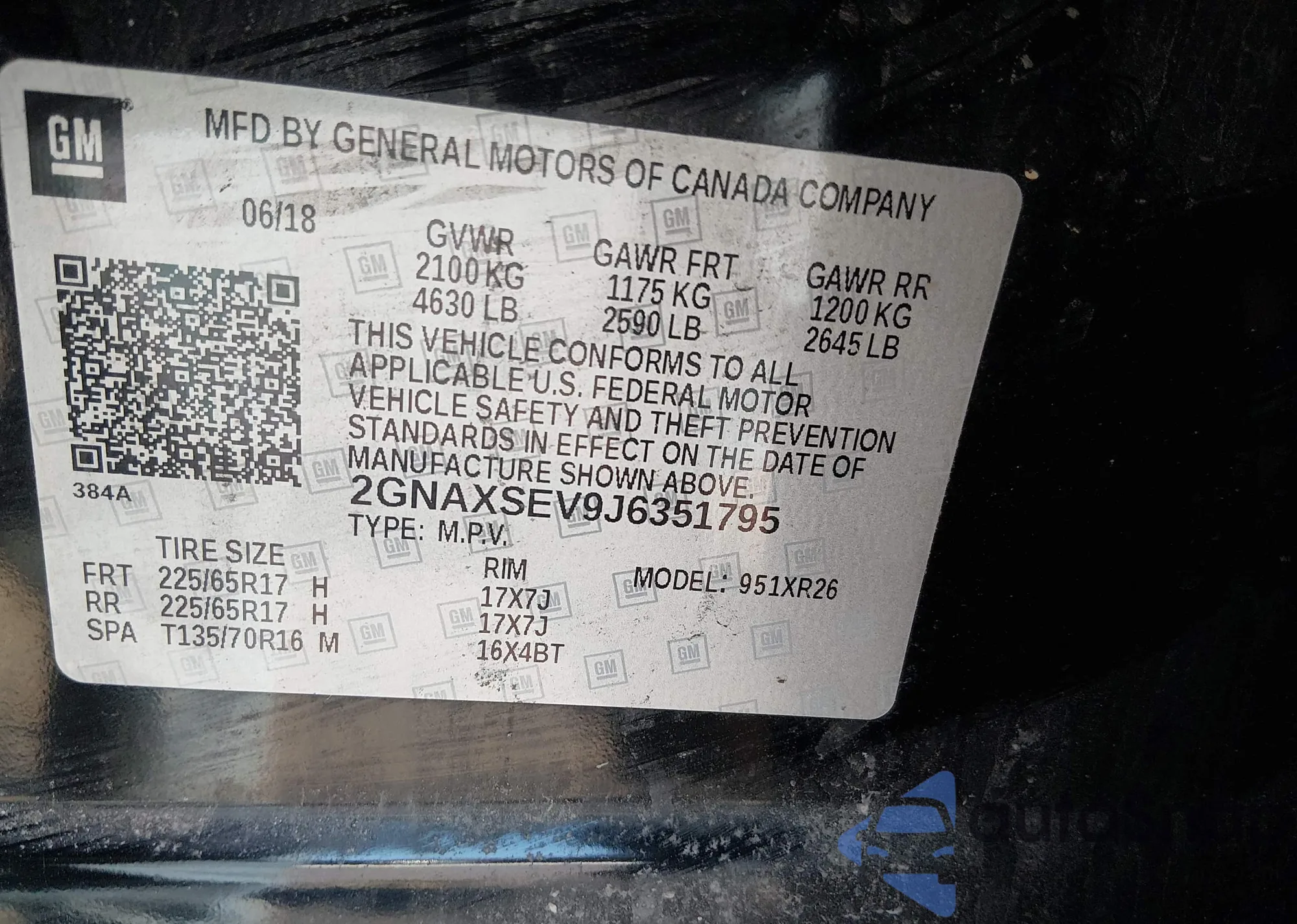 • VIN 2GNAXSEV9J6351795
