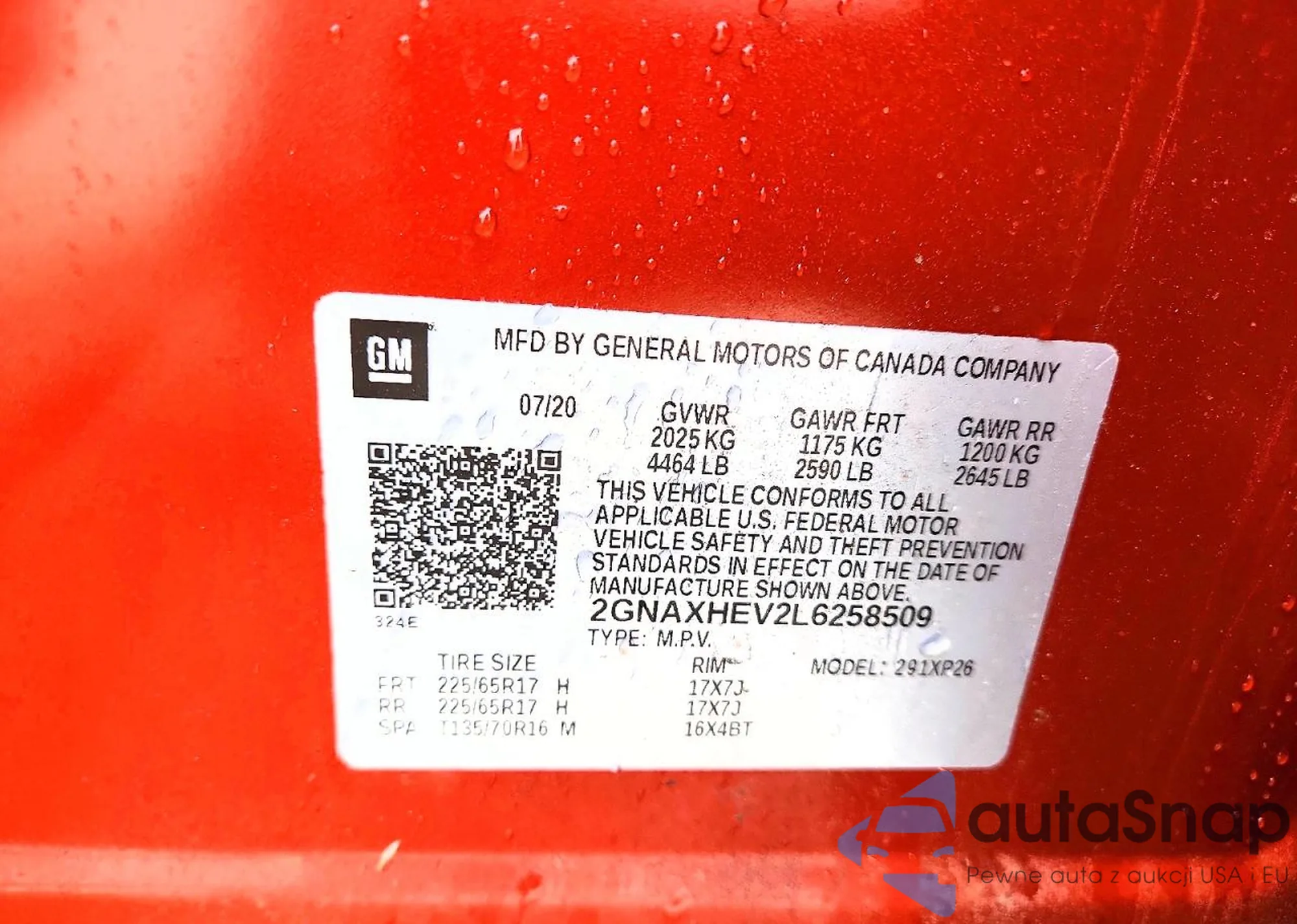 • VIN 2GNAXHEV2L6258509