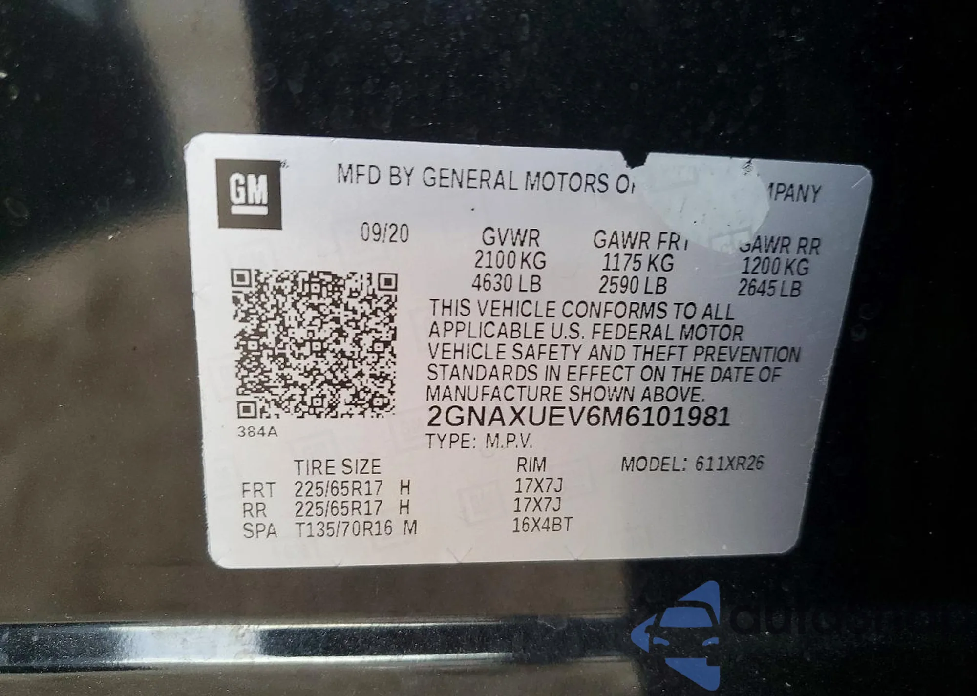 • VIN 2GNAXUEV6M6101981
