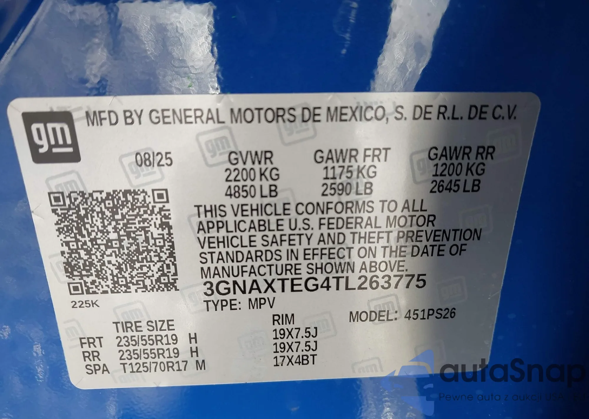 LOT: 43960061 VIN: 3GNAXTEG4TL263775