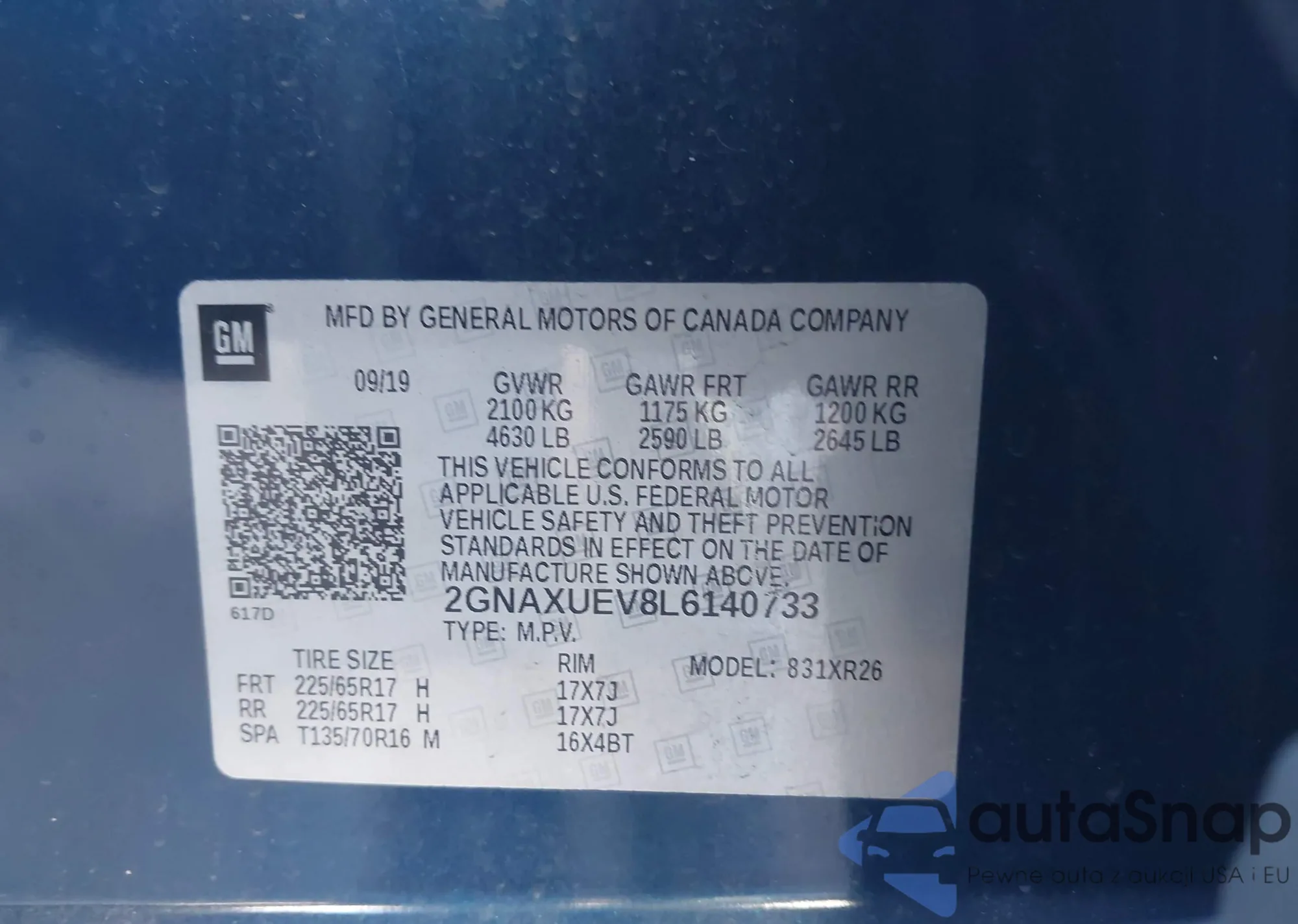 • VIN 2GNAXUEV8L6140733