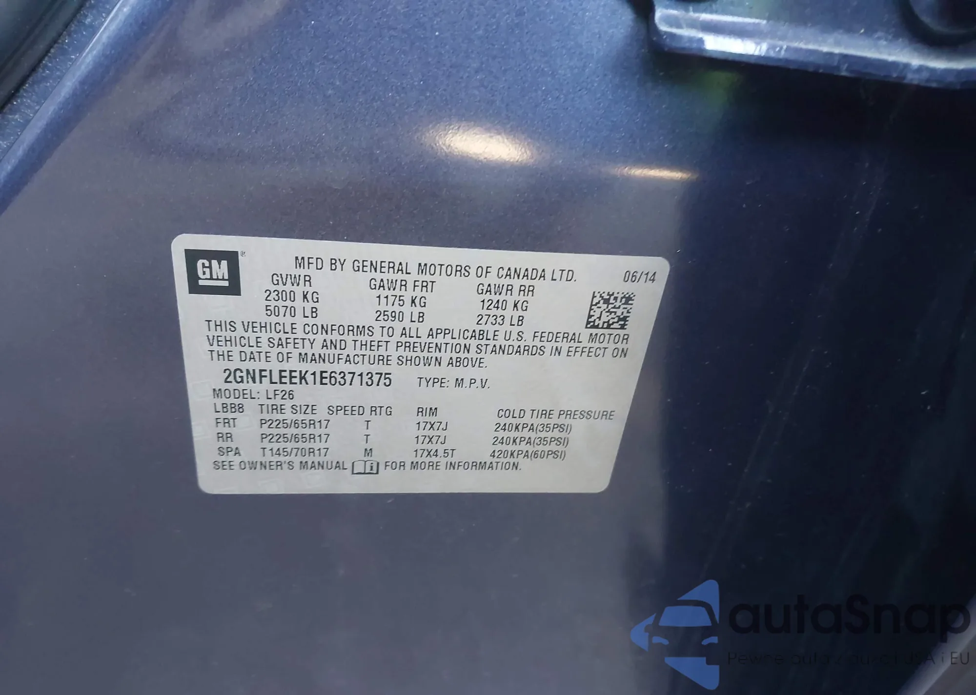 • VIN 2GNFLEEK1E6371375