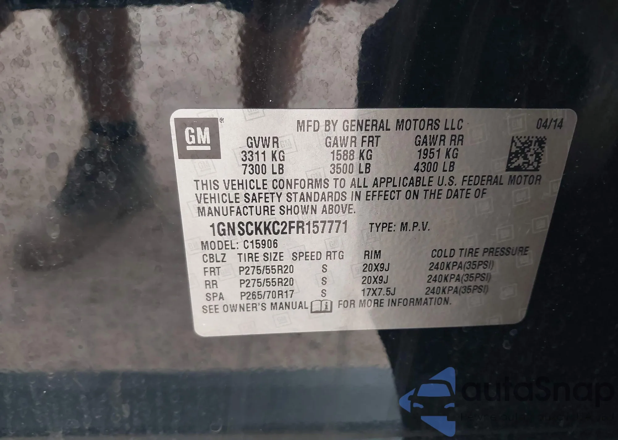 • VIN 1GNSCKKC2FR157771