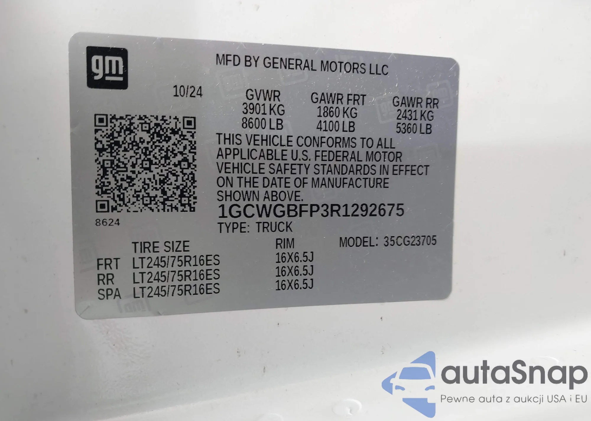 • VIN 1GCZGHF72M1164128