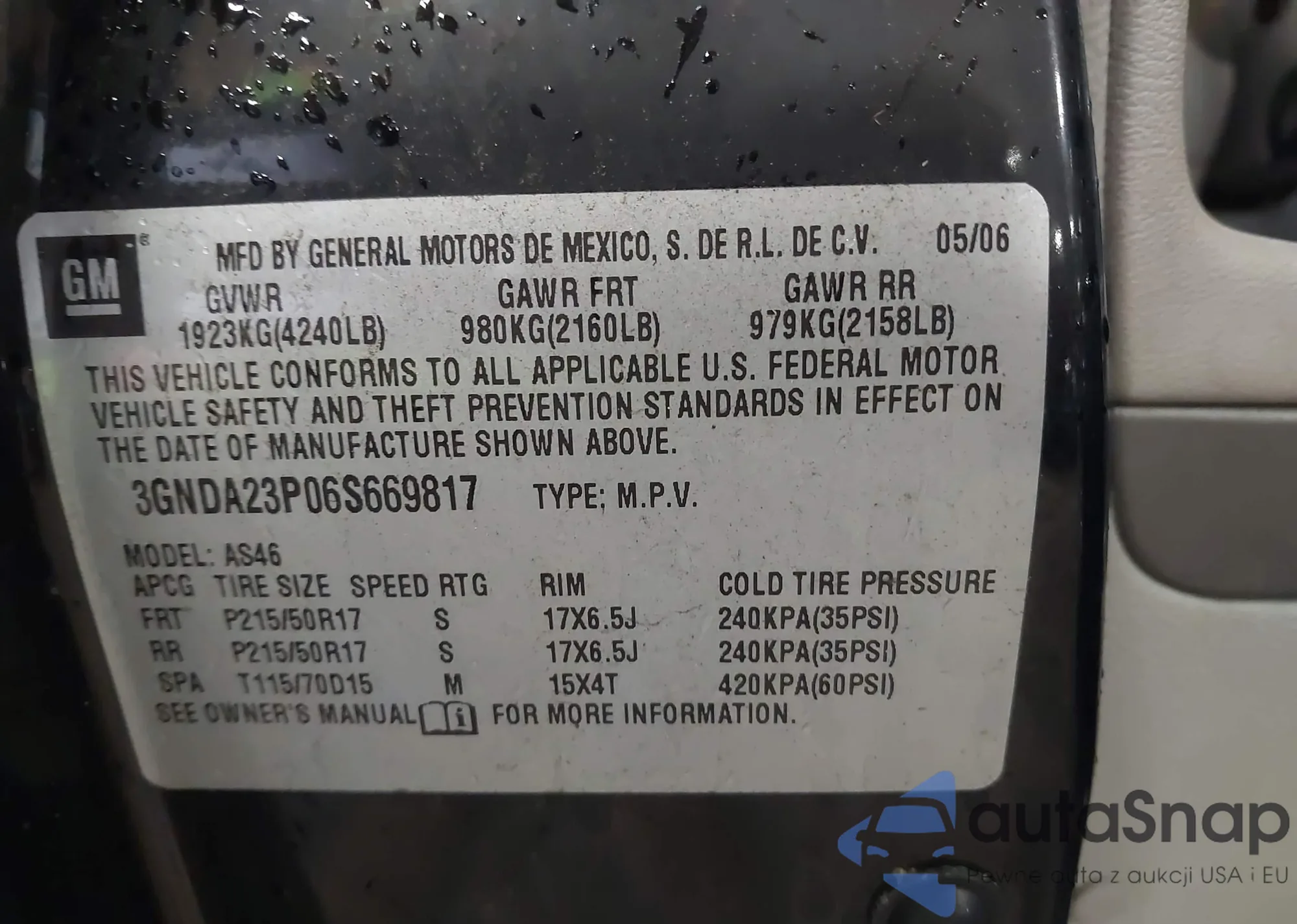 • VIN 3GNDA23PO6S669817
