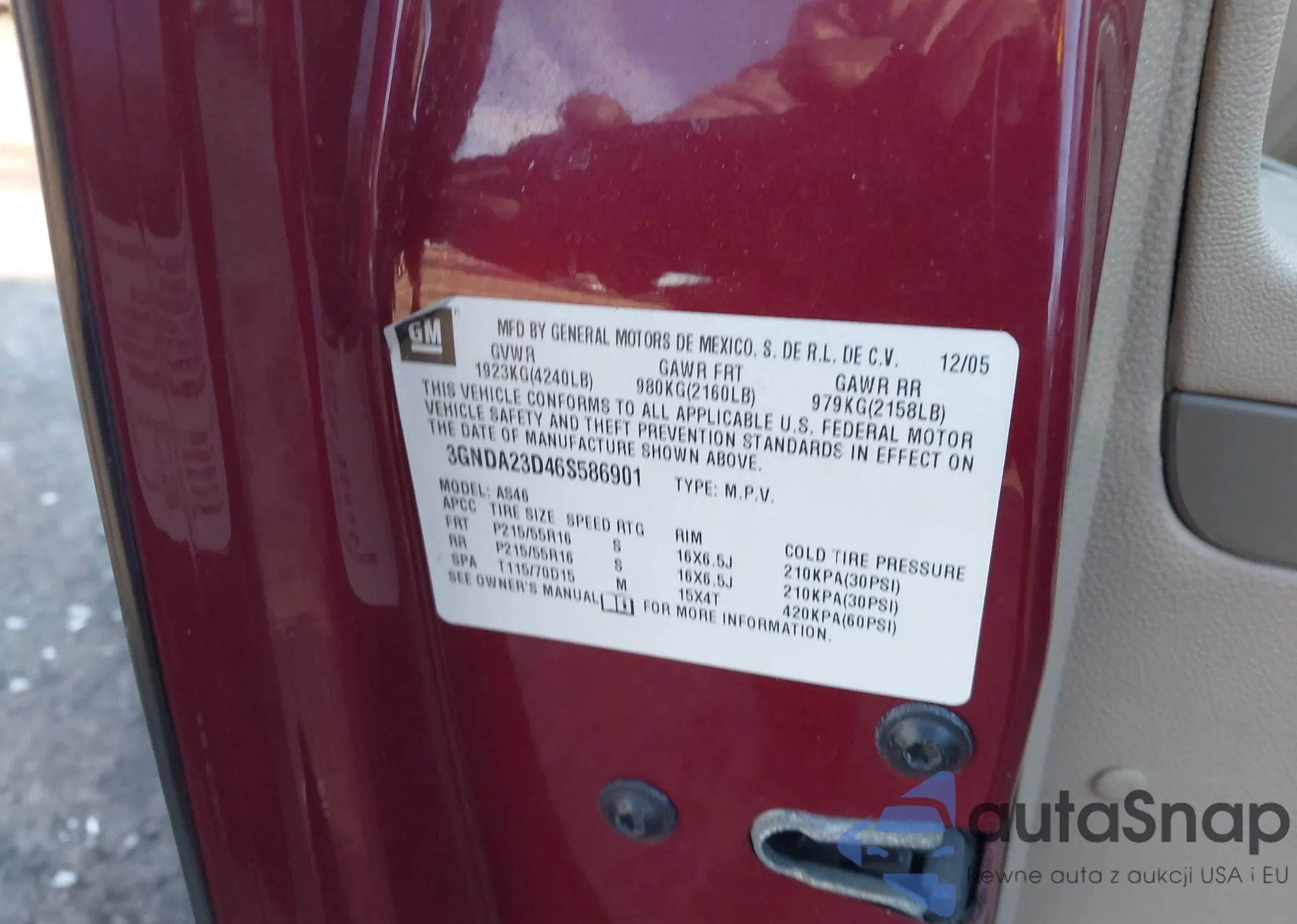 • VIN 3GNDA23D46S586901