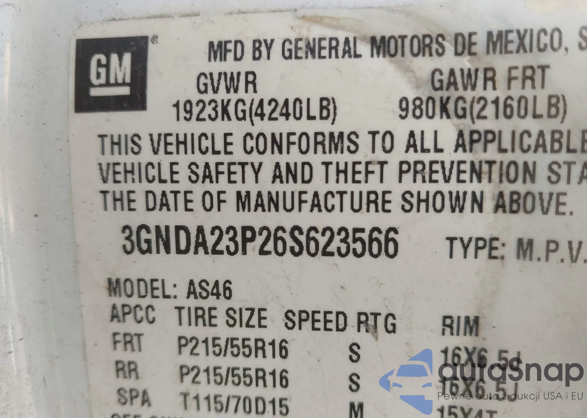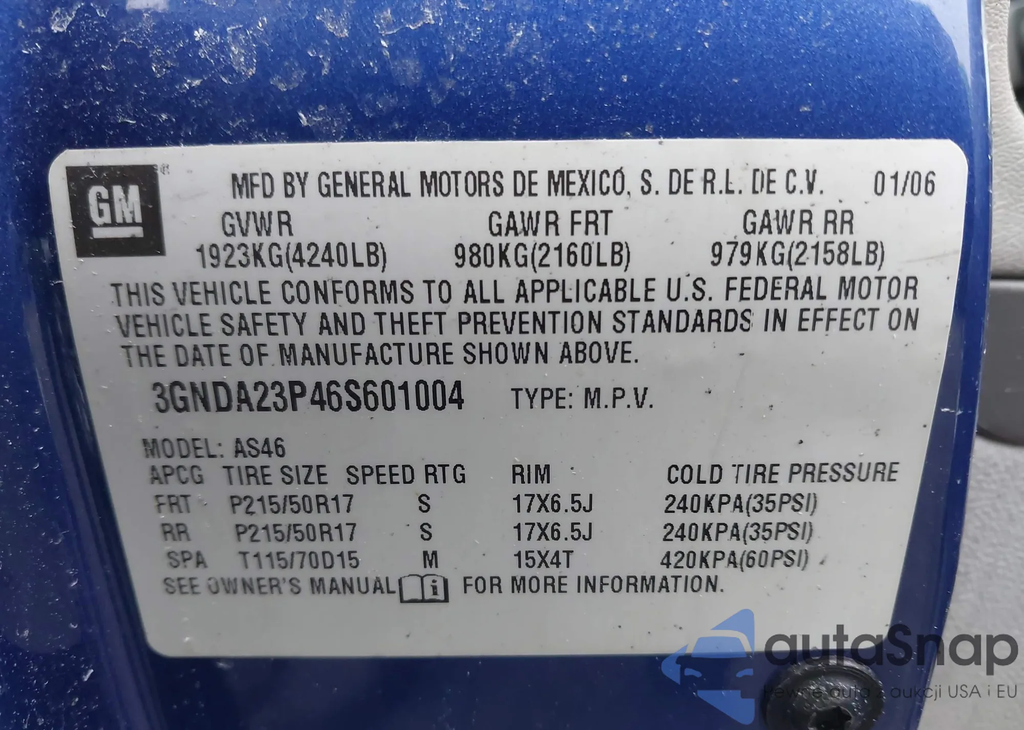 • VIN 3GNDA23P46S601004