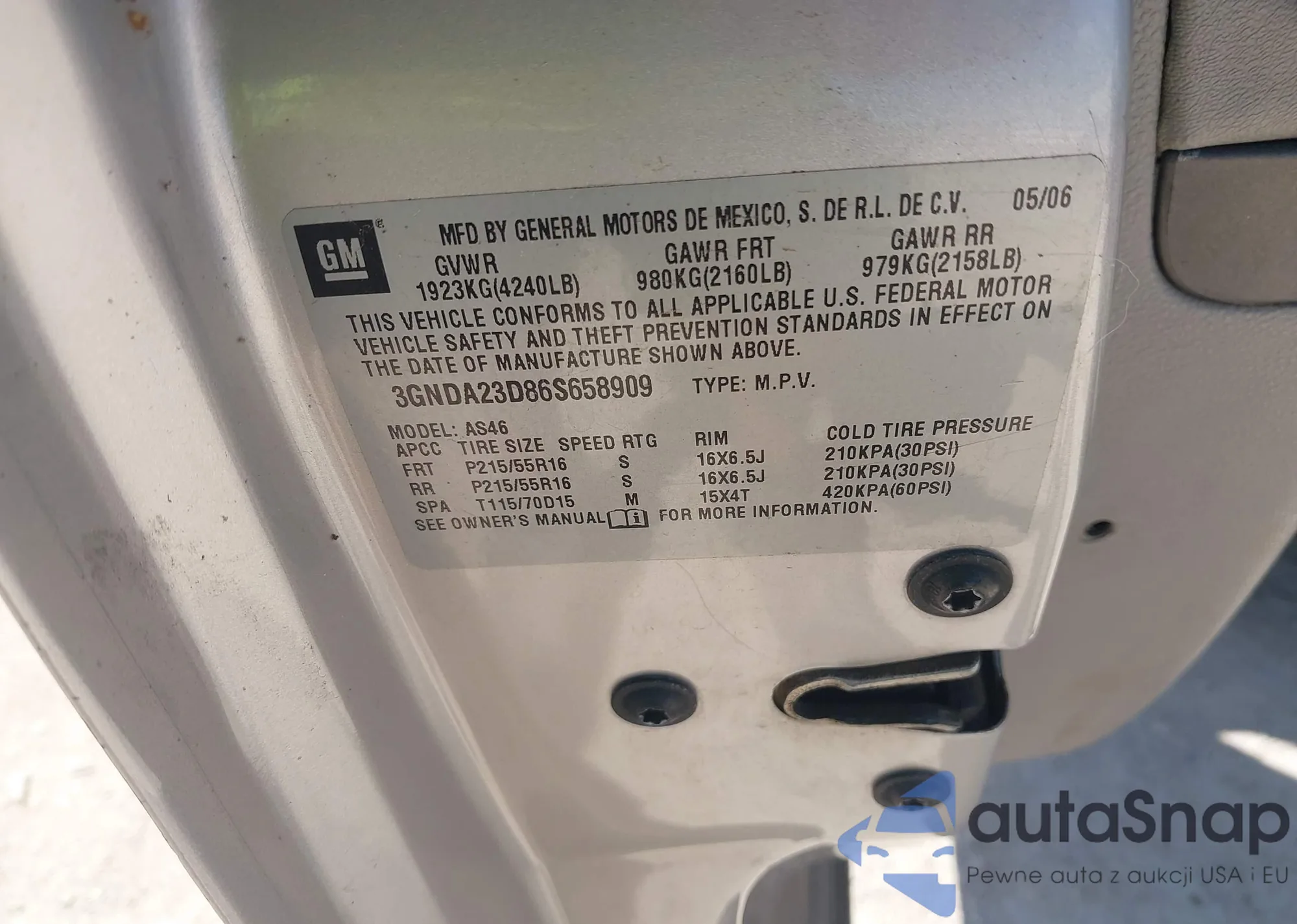 • VIN 3GNDA23D86S658909
