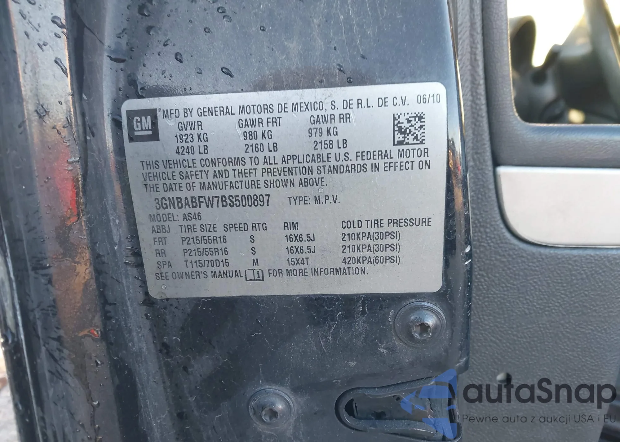 • VIN 3GNBABFW7BS500897