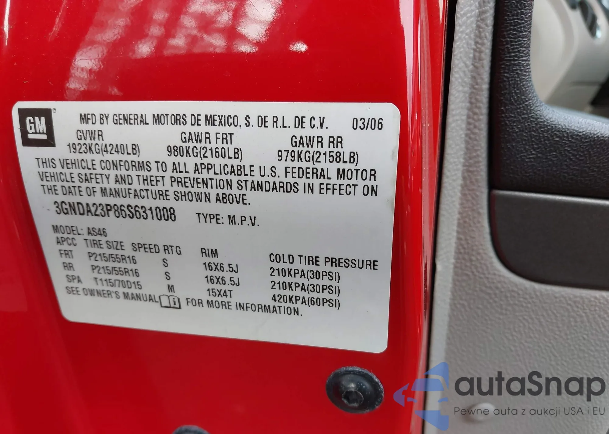 • VIN 3GNDA23P86S631008