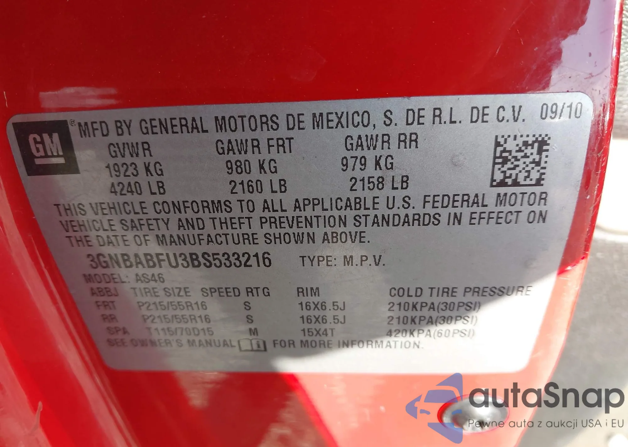 • VIN 3GNBABFU3BS533216