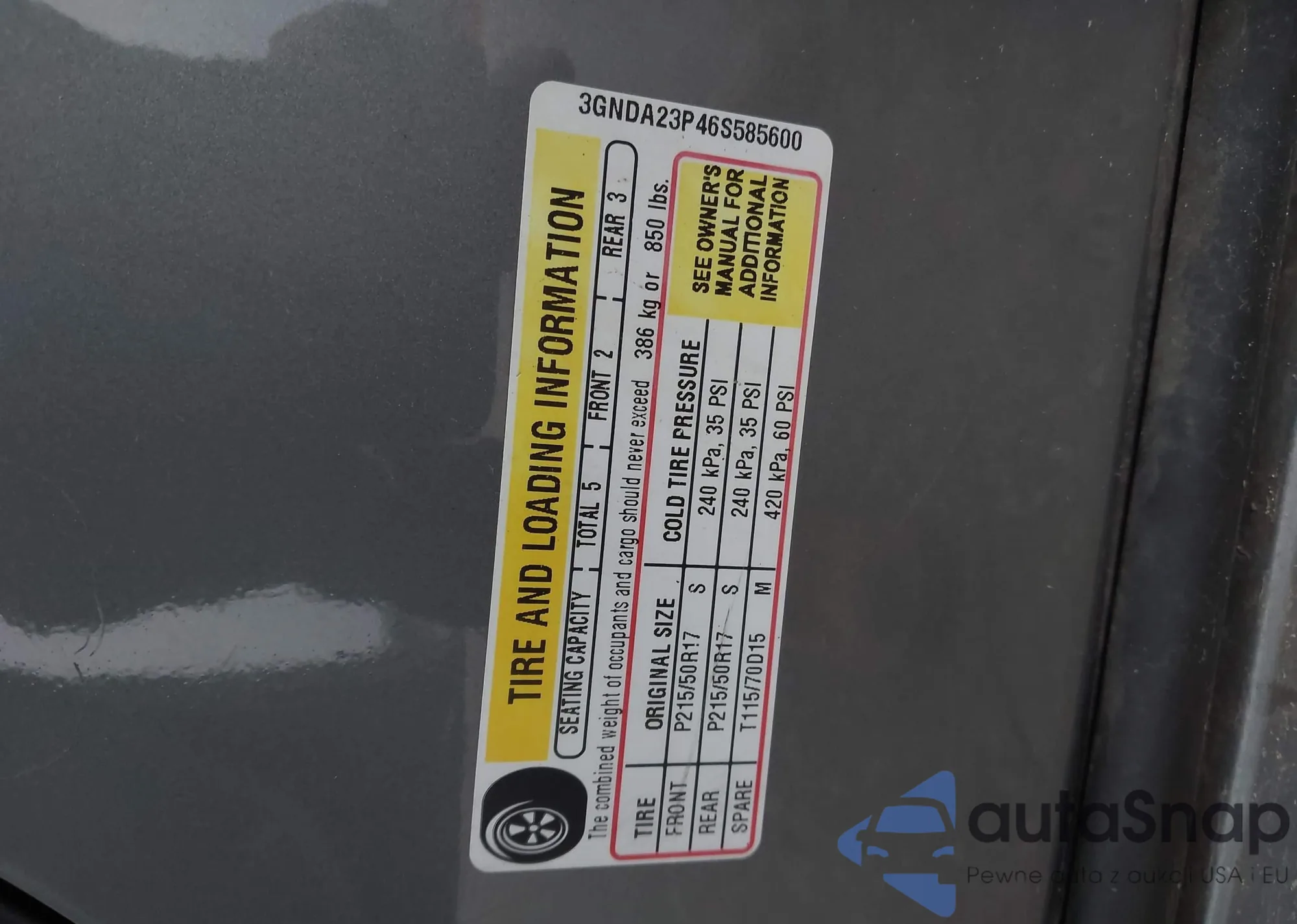• VIN 3GNDA23P46S585600