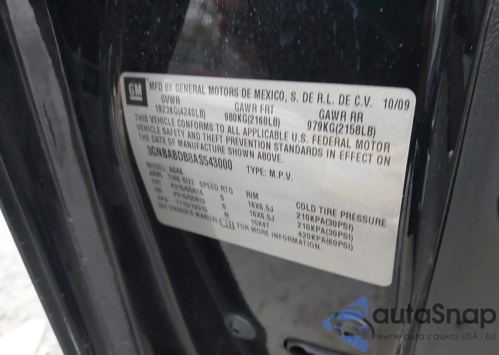 • VIN 3GNBABDB8AS543000