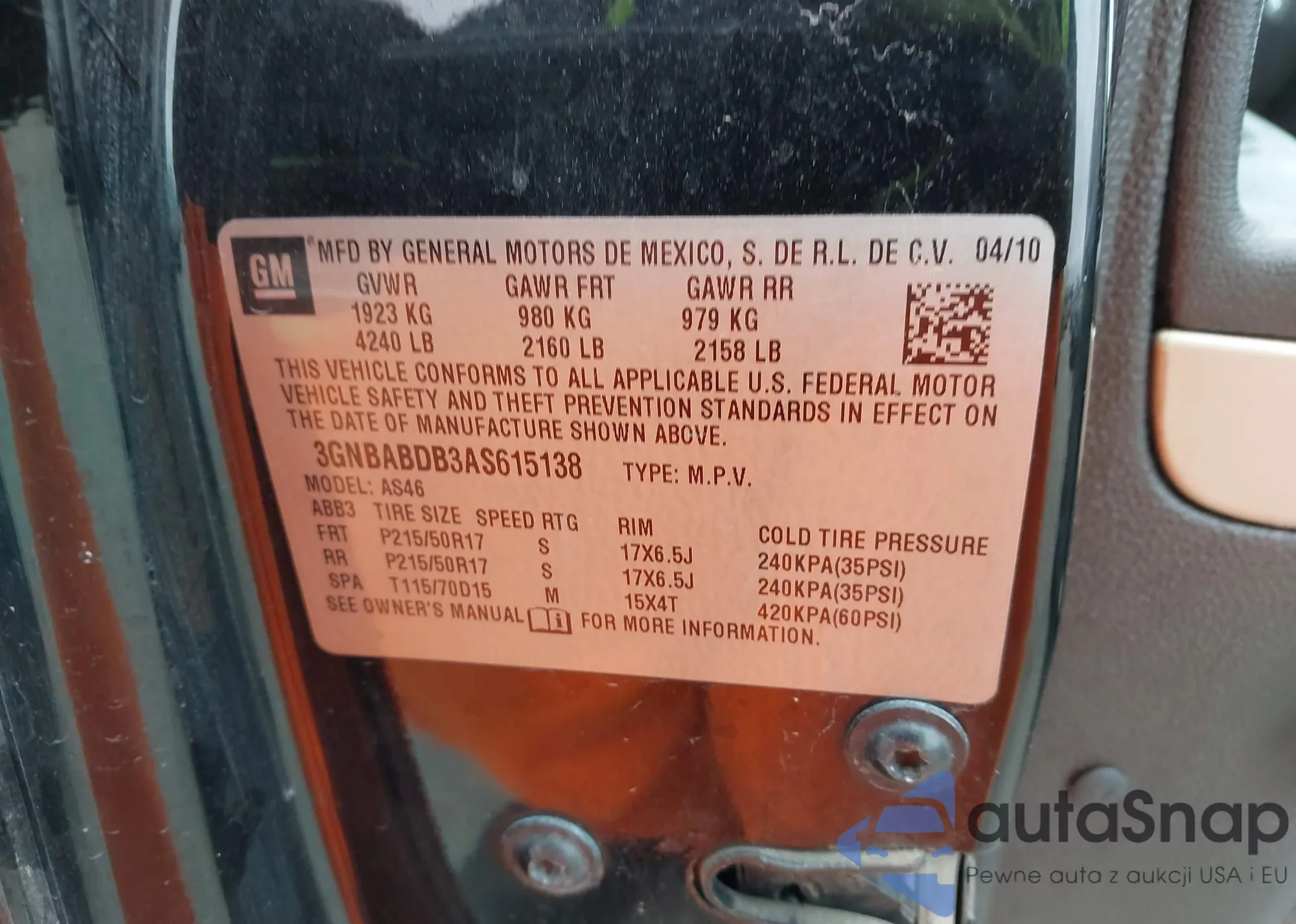 • VIN 3GNBABDB3AS615138