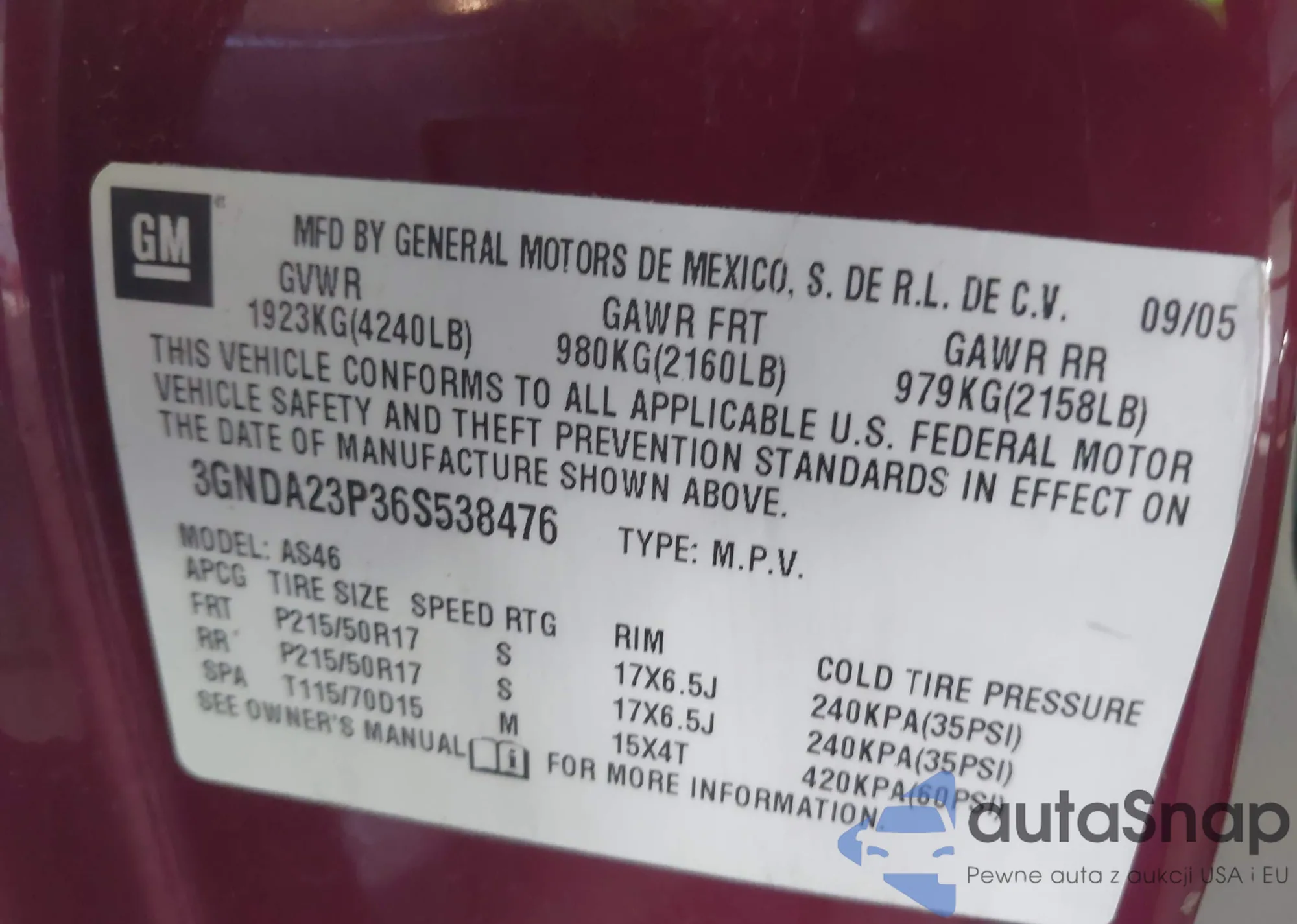 • VIN 3GNDA23P36S538476