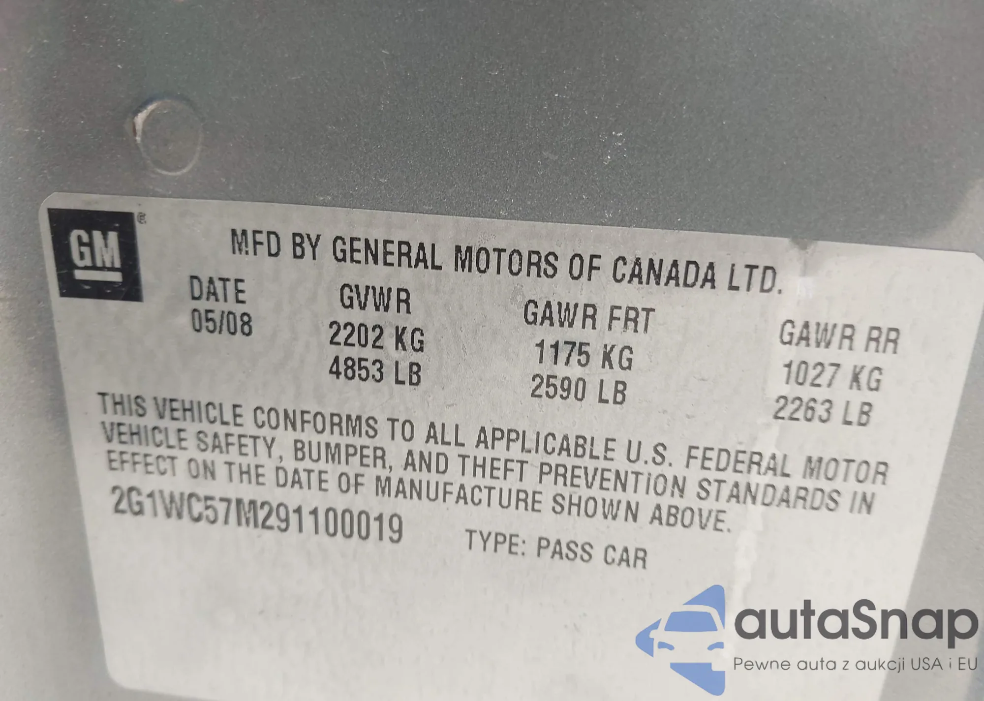 • VIN 2G1WC57M291100019