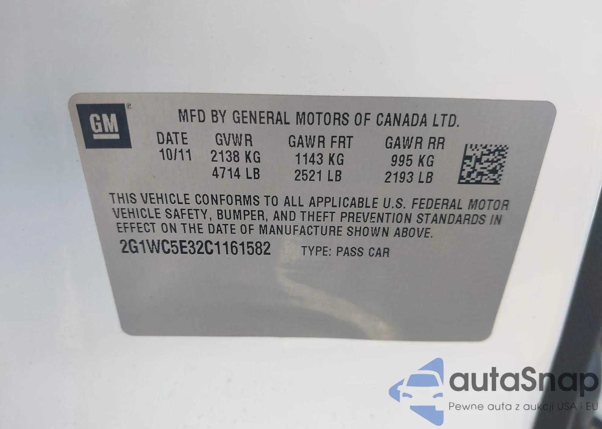 • VIN 2G1WC5E32C1161582