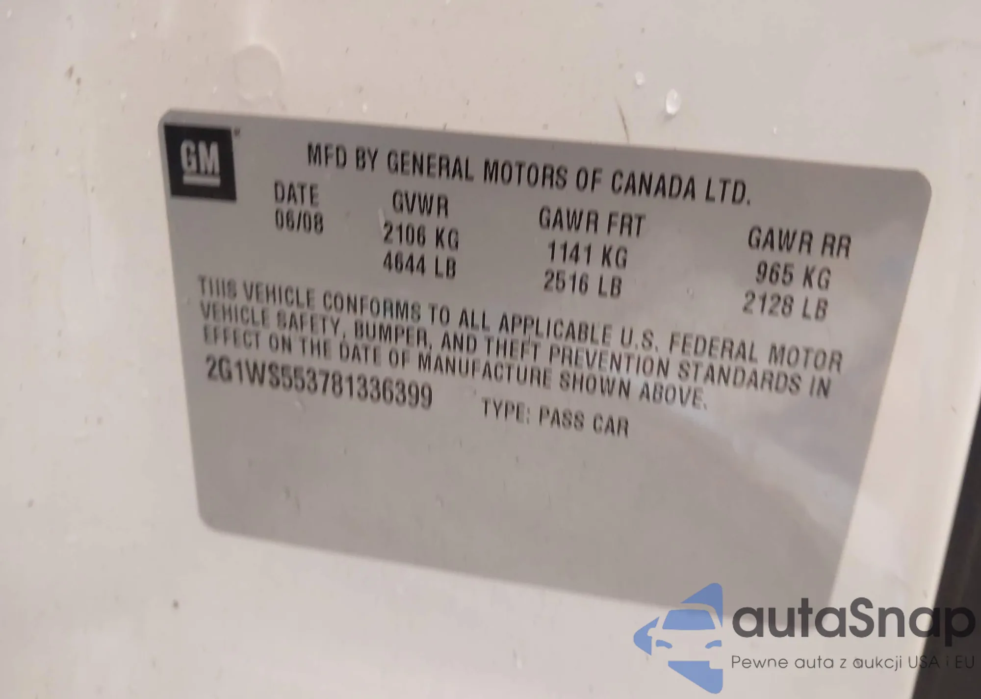 • VIN 2G1WS553781336399