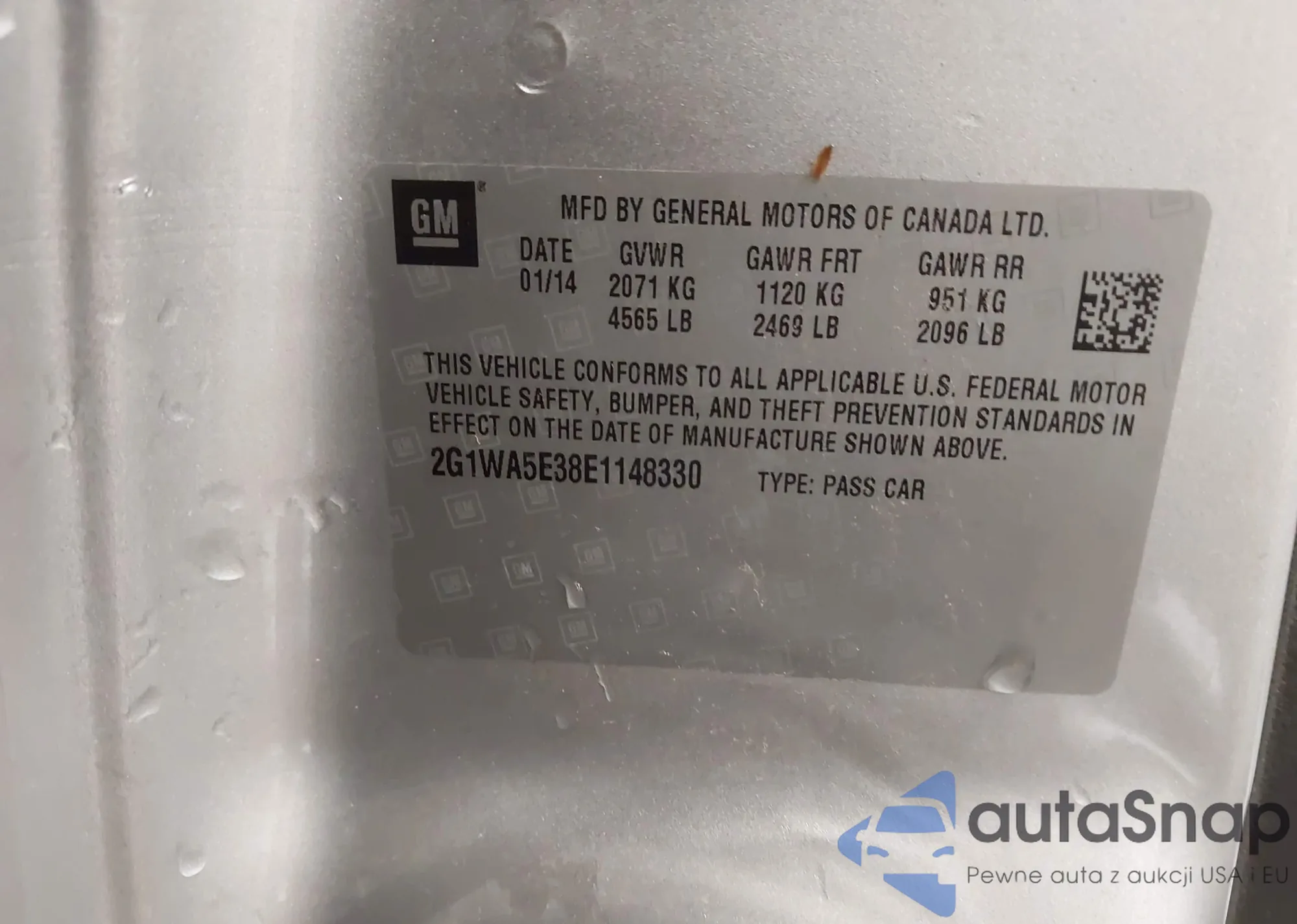 LOT: 43741954 VIN: 2G1WA5E38E1148330
