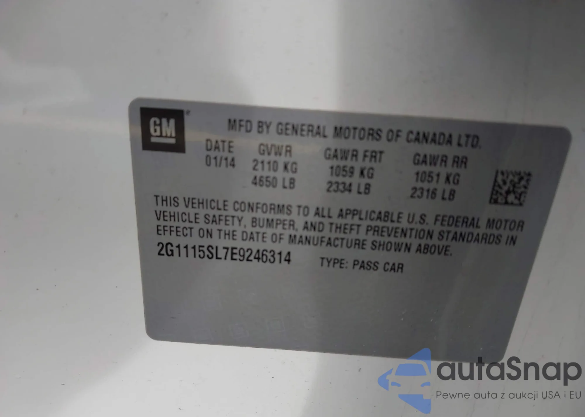 • VIN 2G1115SL7E9246314