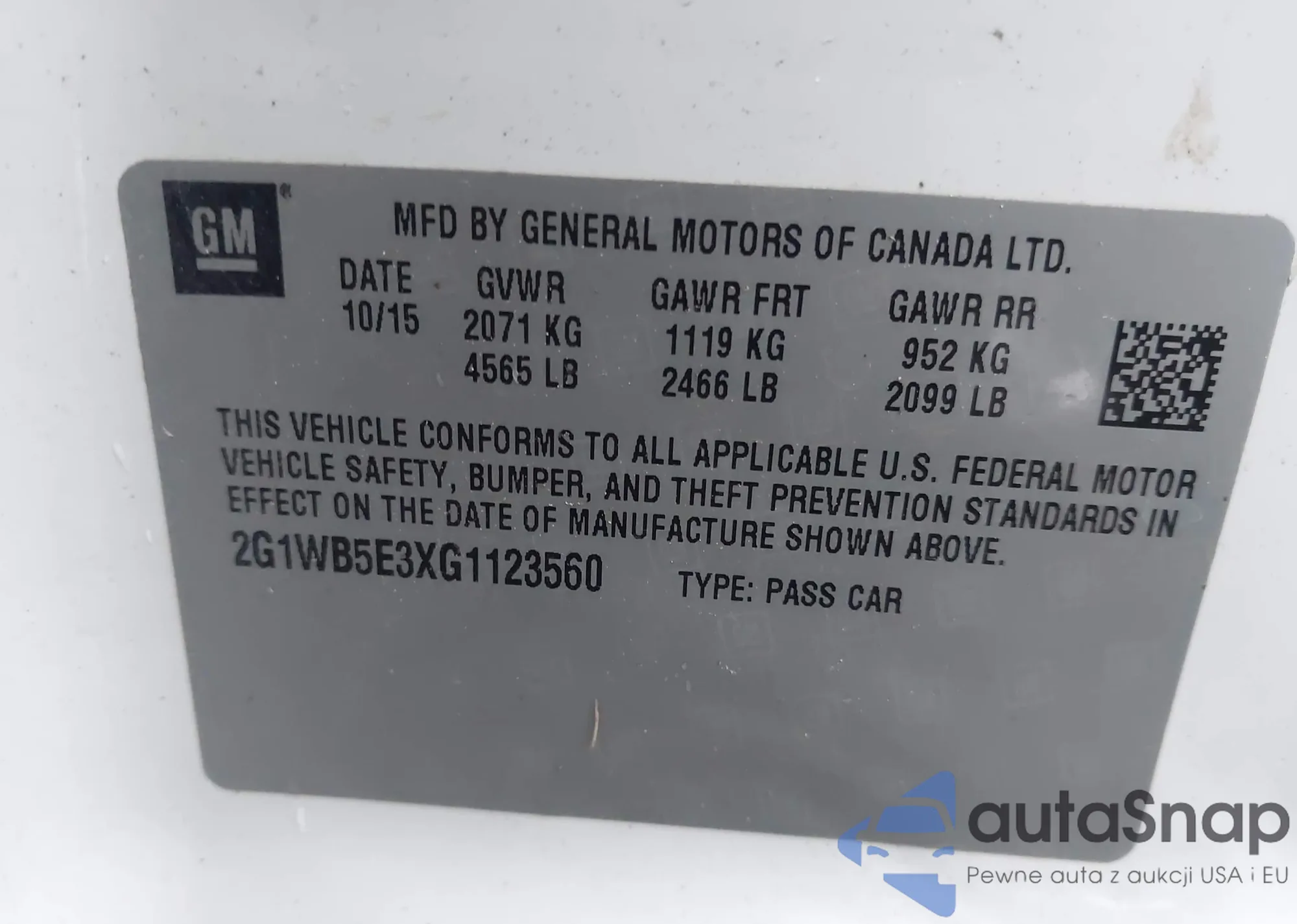 LOT: 44149342 VIN: 2G1WB5E3XG1123560