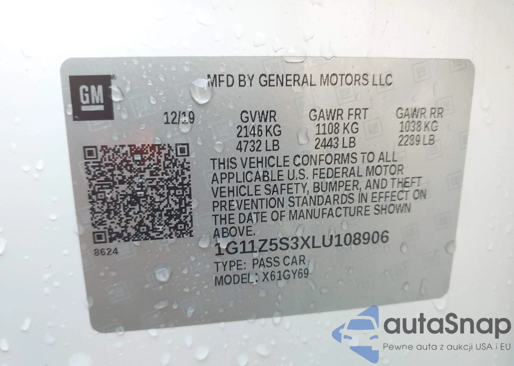• VIN 1G11Z5S3XLU108906