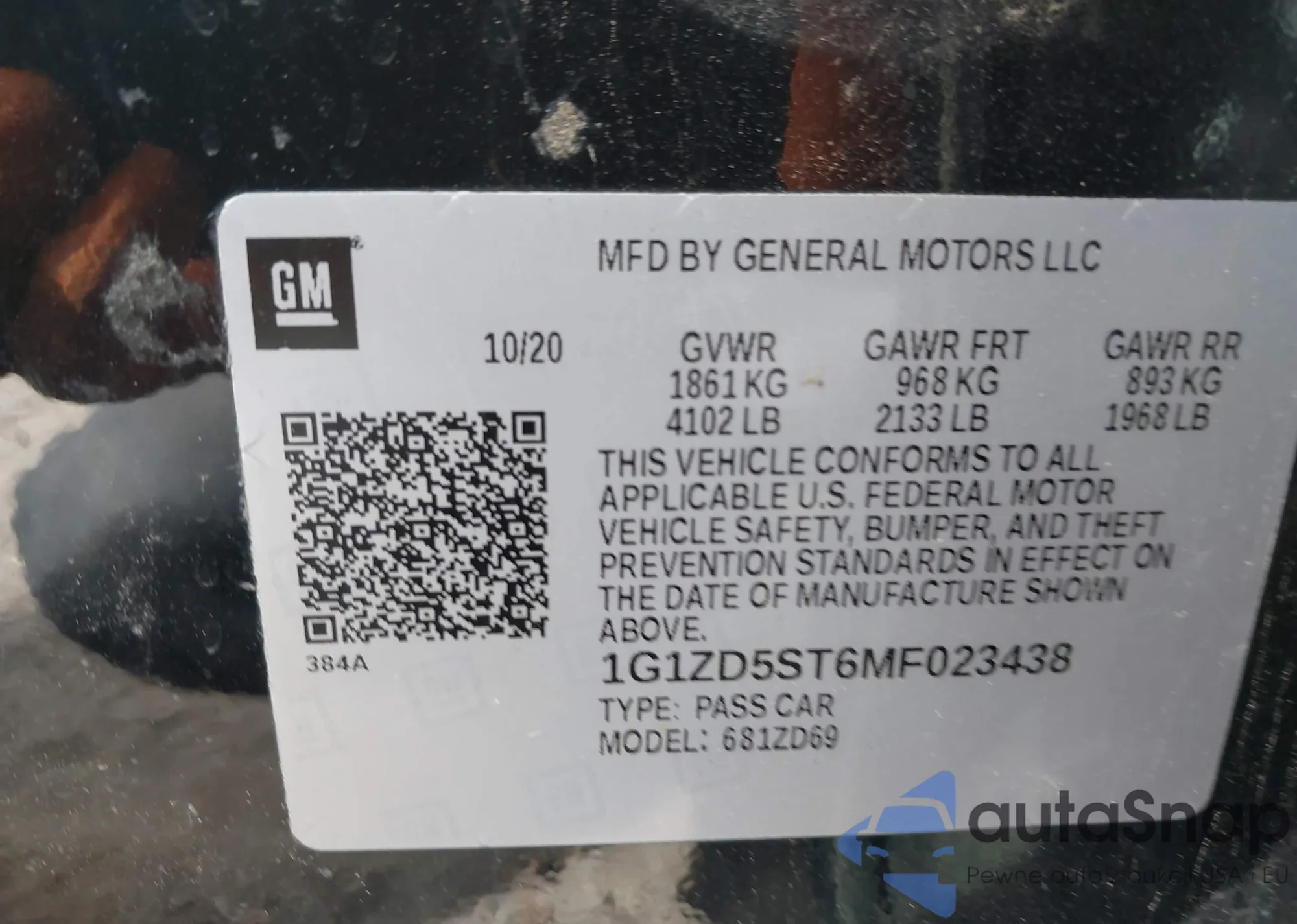 • VIN 1G1ZD5ST6MF023438