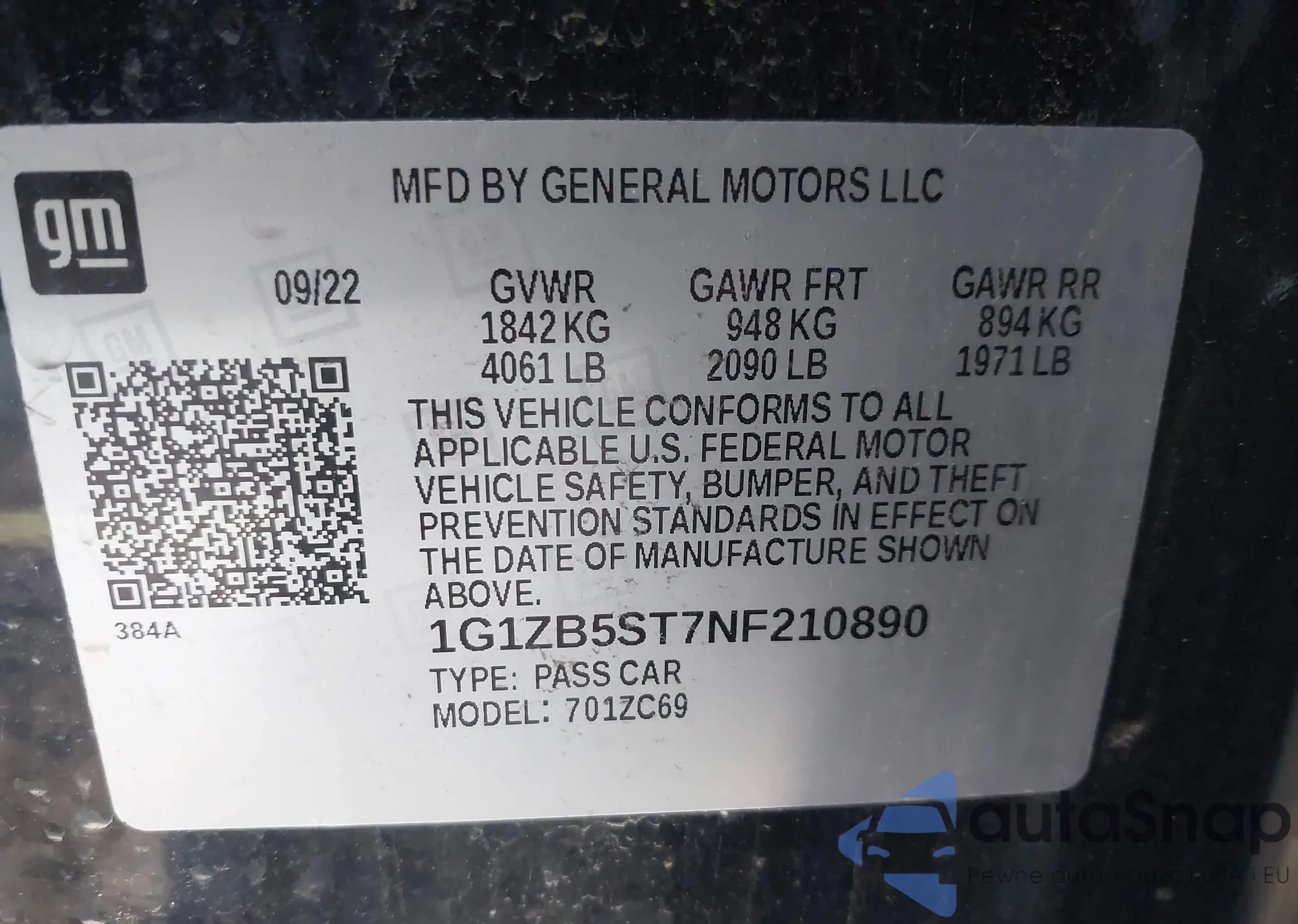 • VIN 1G1ZB5ST7NF210890