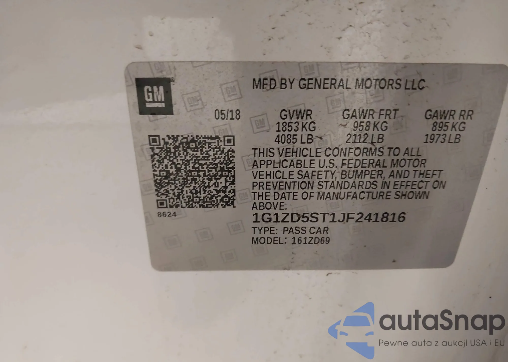 • VIN 1G1ZD5ST1JF241816