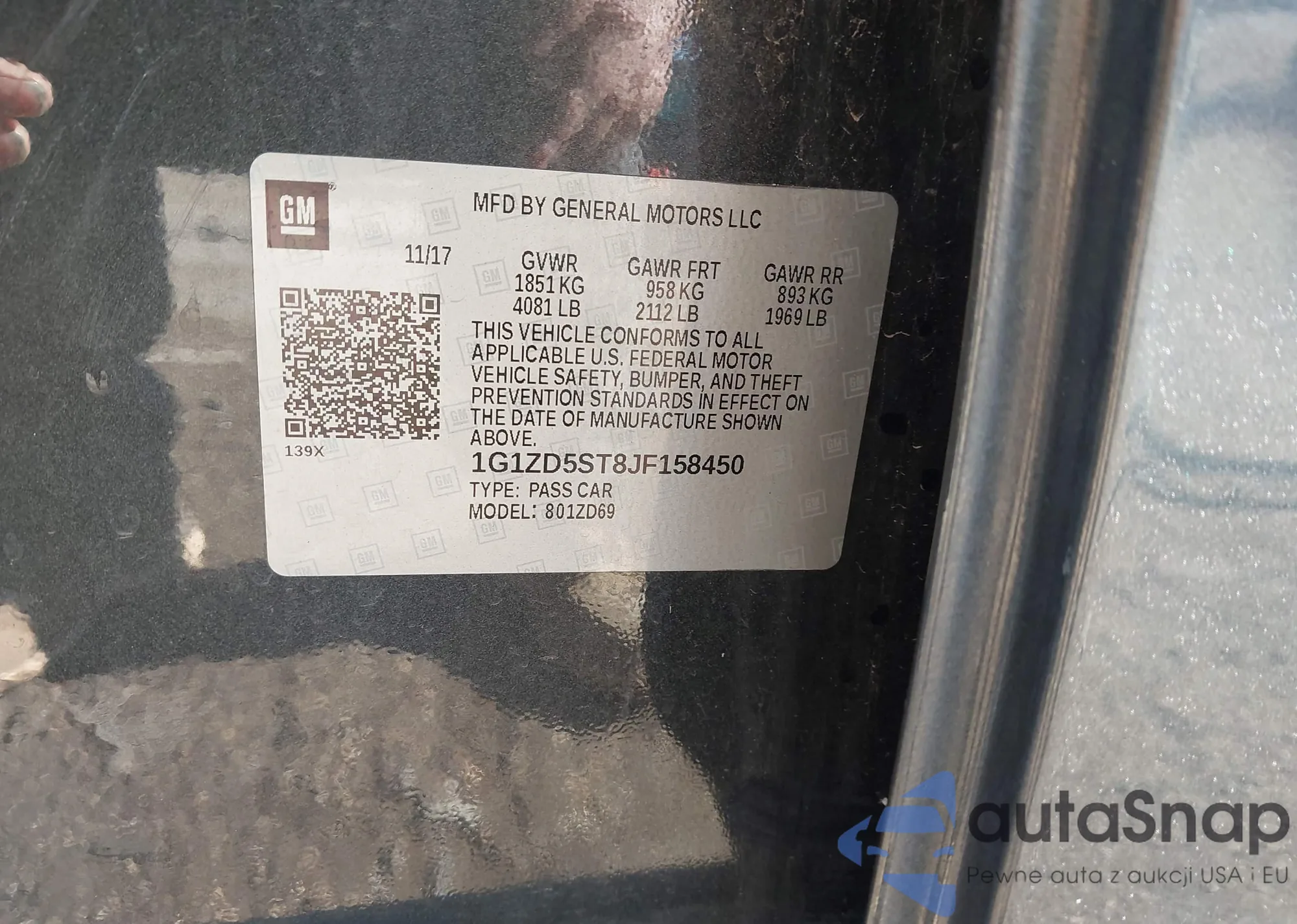 • VIN 1G1ZD5ST8JF158450