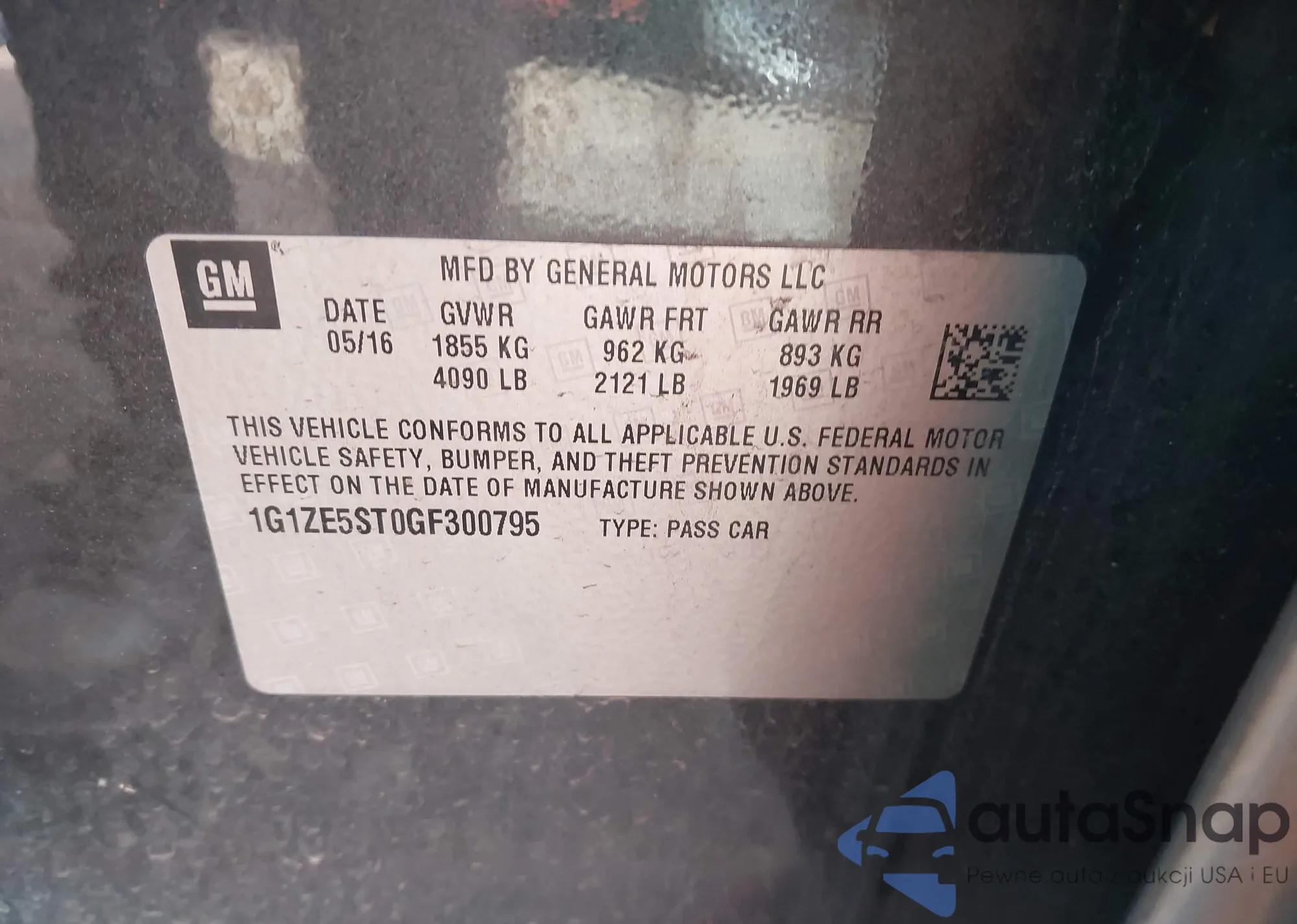 • VIN 1G1ZE5ST0GF300795