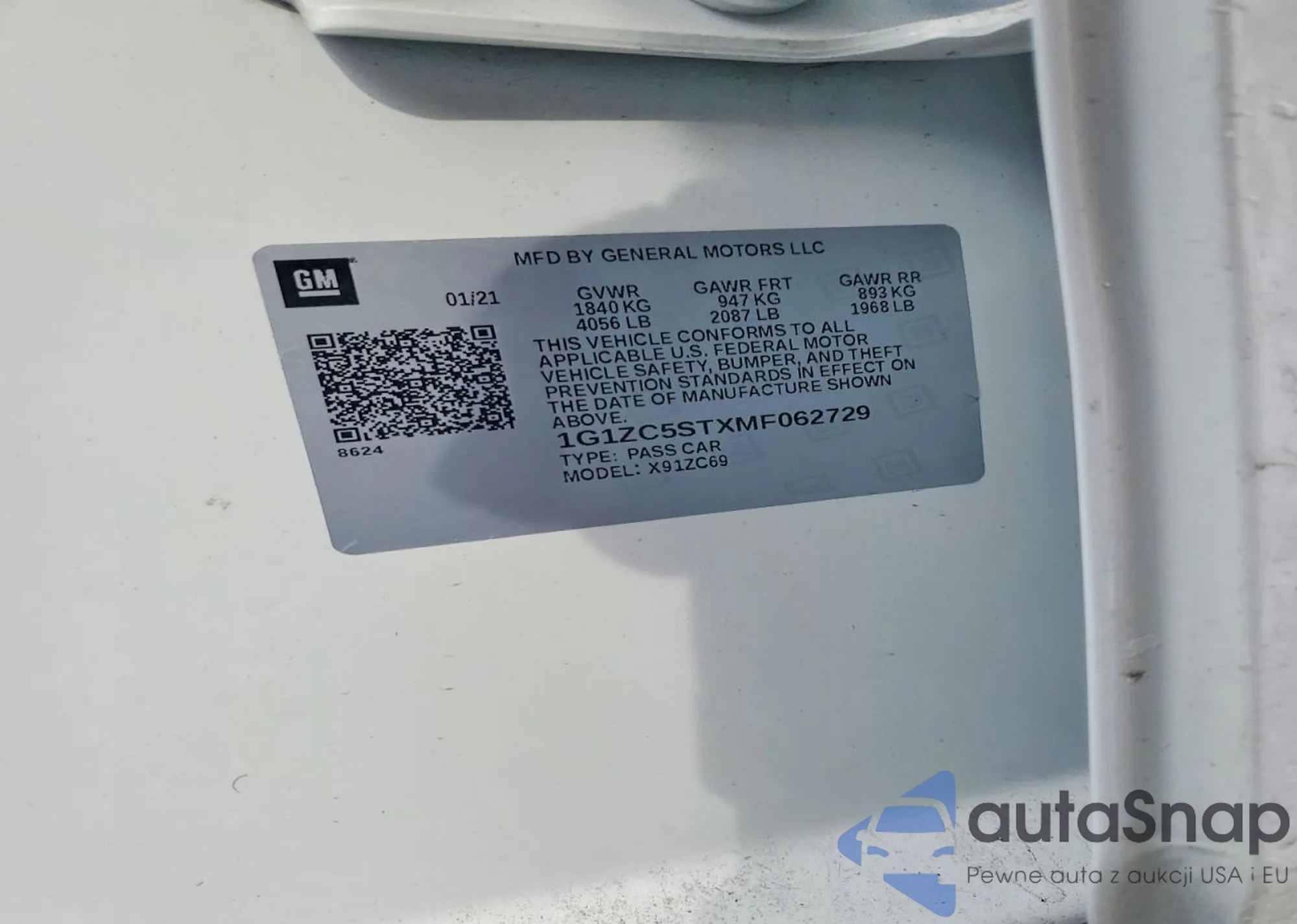LOT: 75078555 VIN: 1G1ZC5STXMF062729