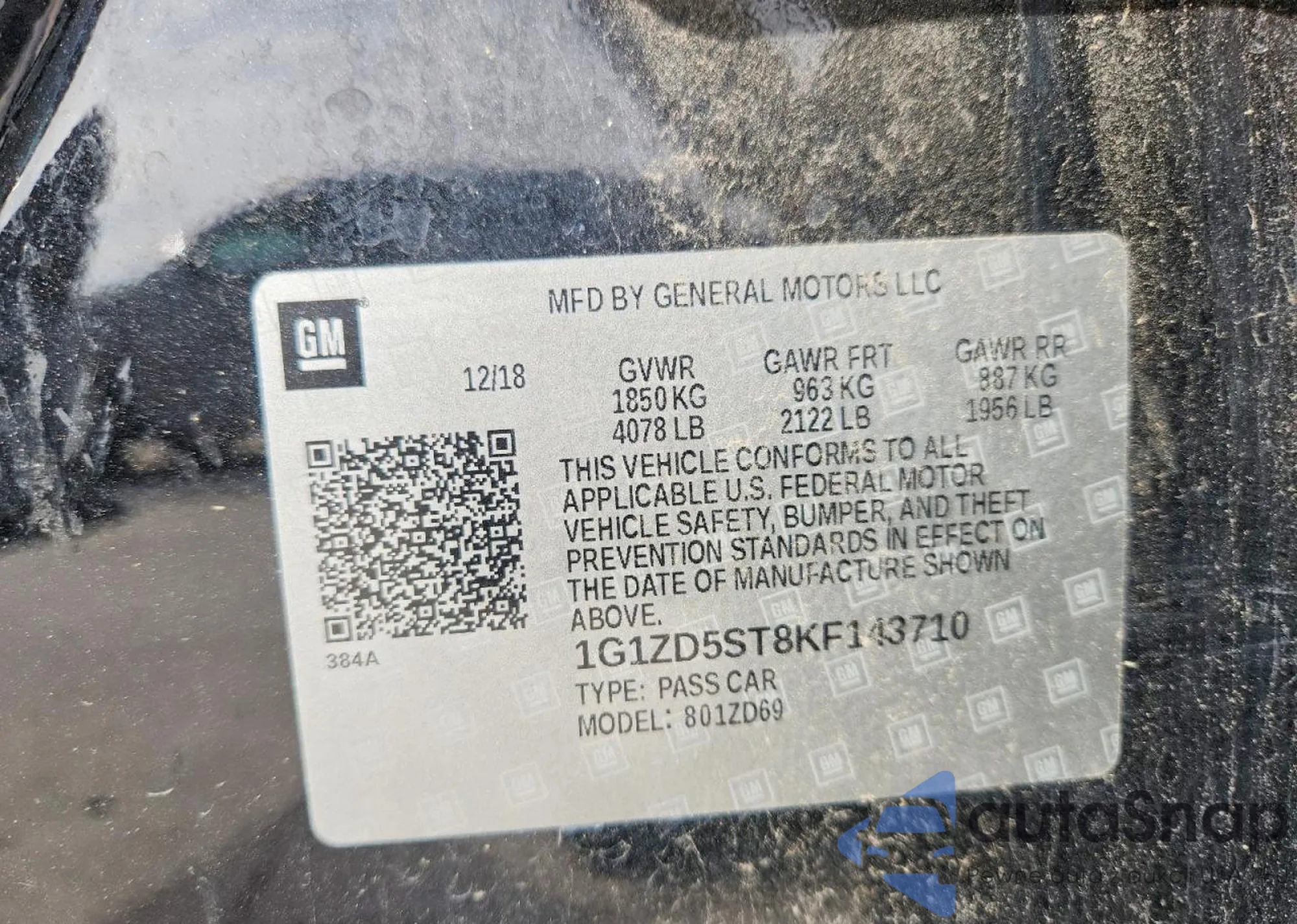 • VIN 1G1ZD5ST8KF143710