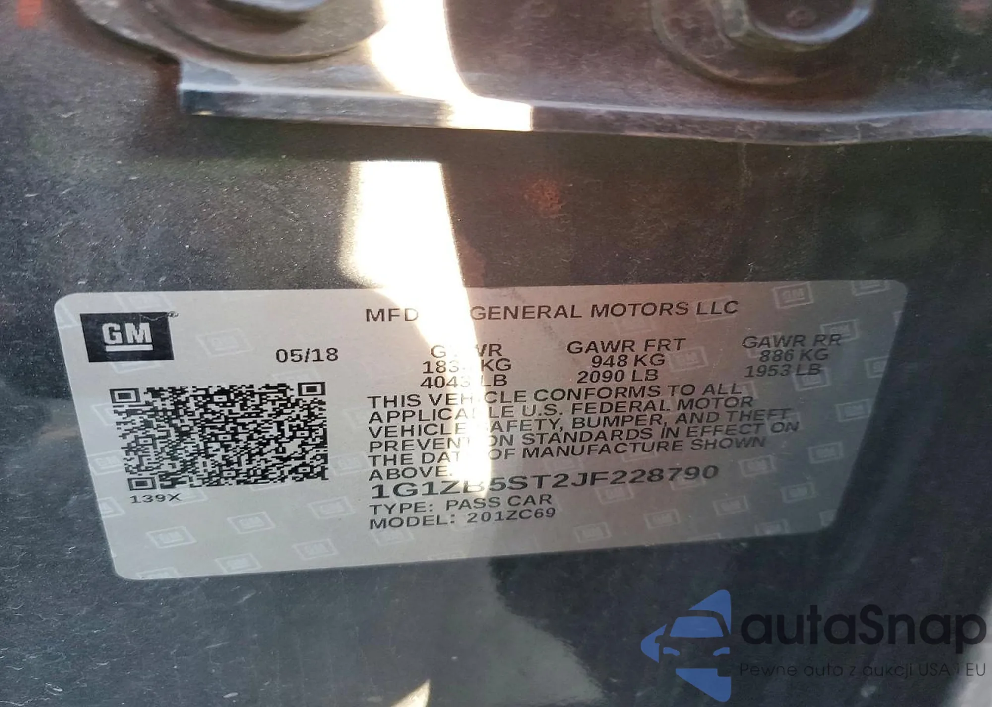 • VIN 1G1ZB5ST2JF228790