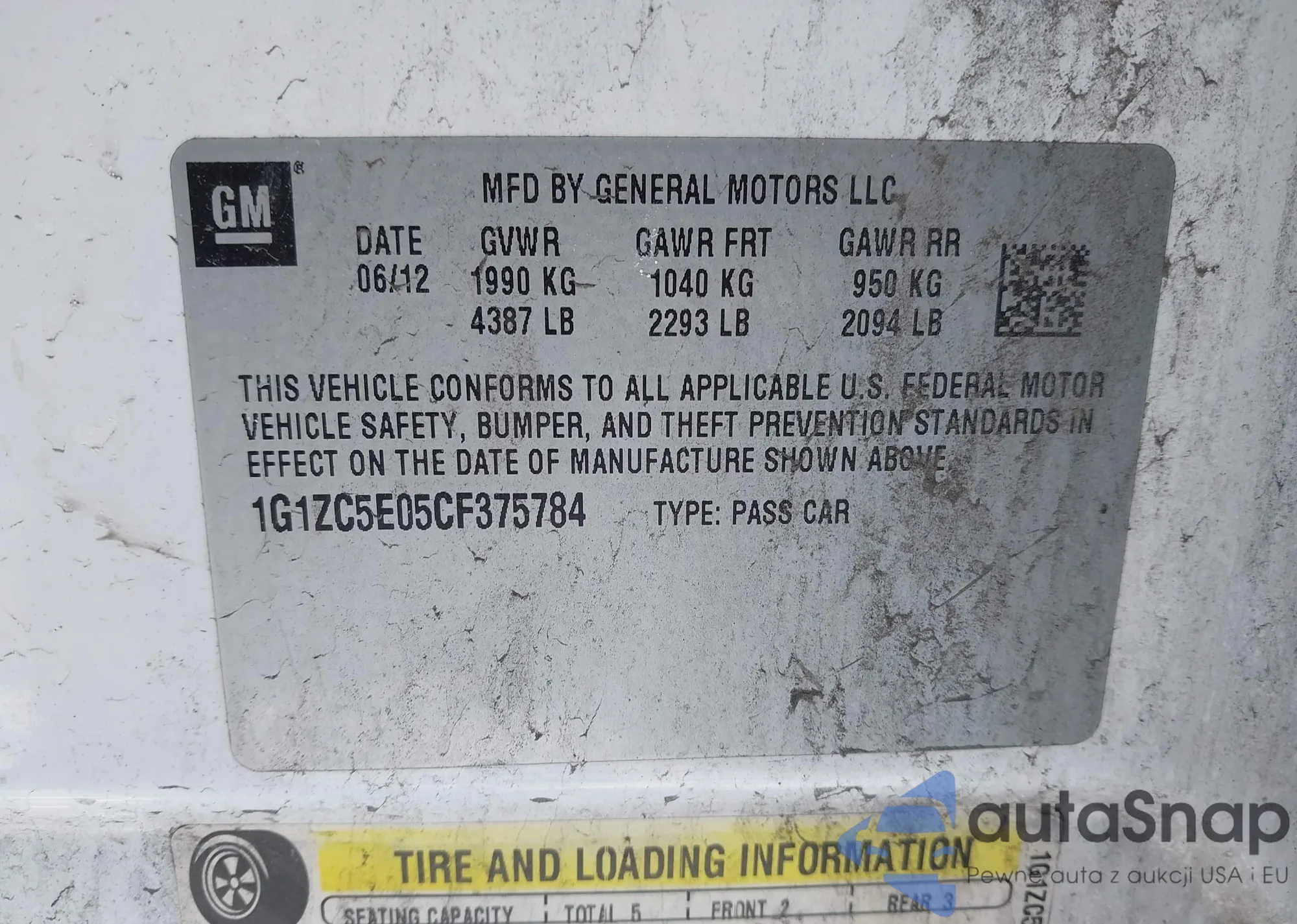 • VIN 1G1ZC5E05CF375784