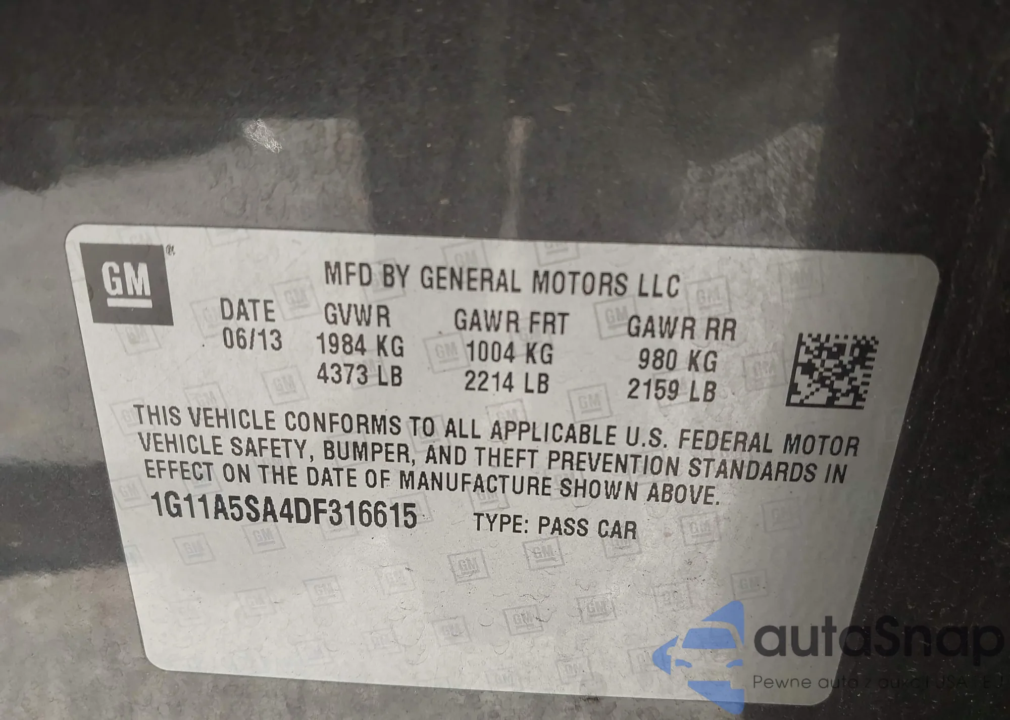 • VIN 1G11A5SA4DF316615