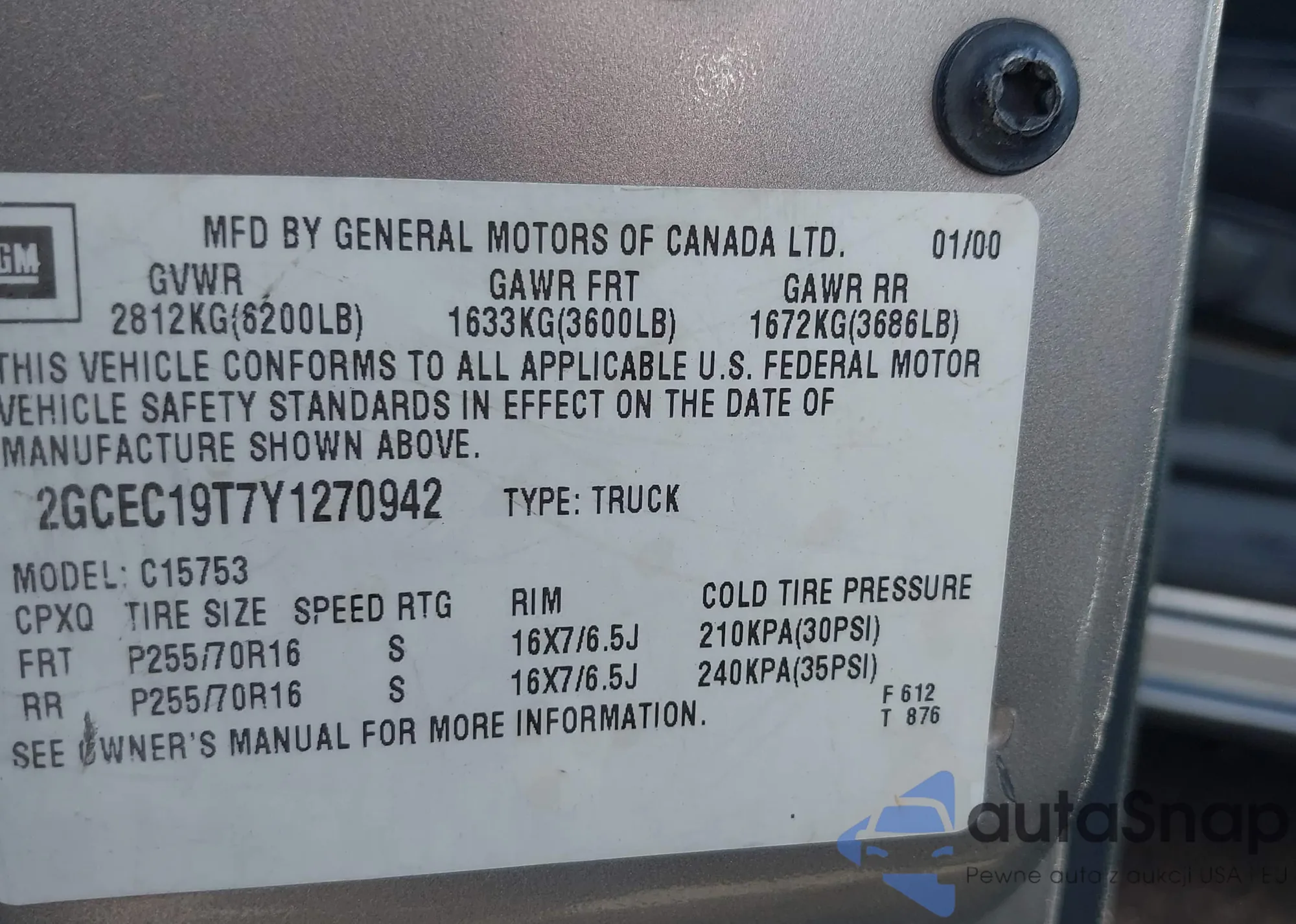 • VIN 2GCEC19T7Y1270942