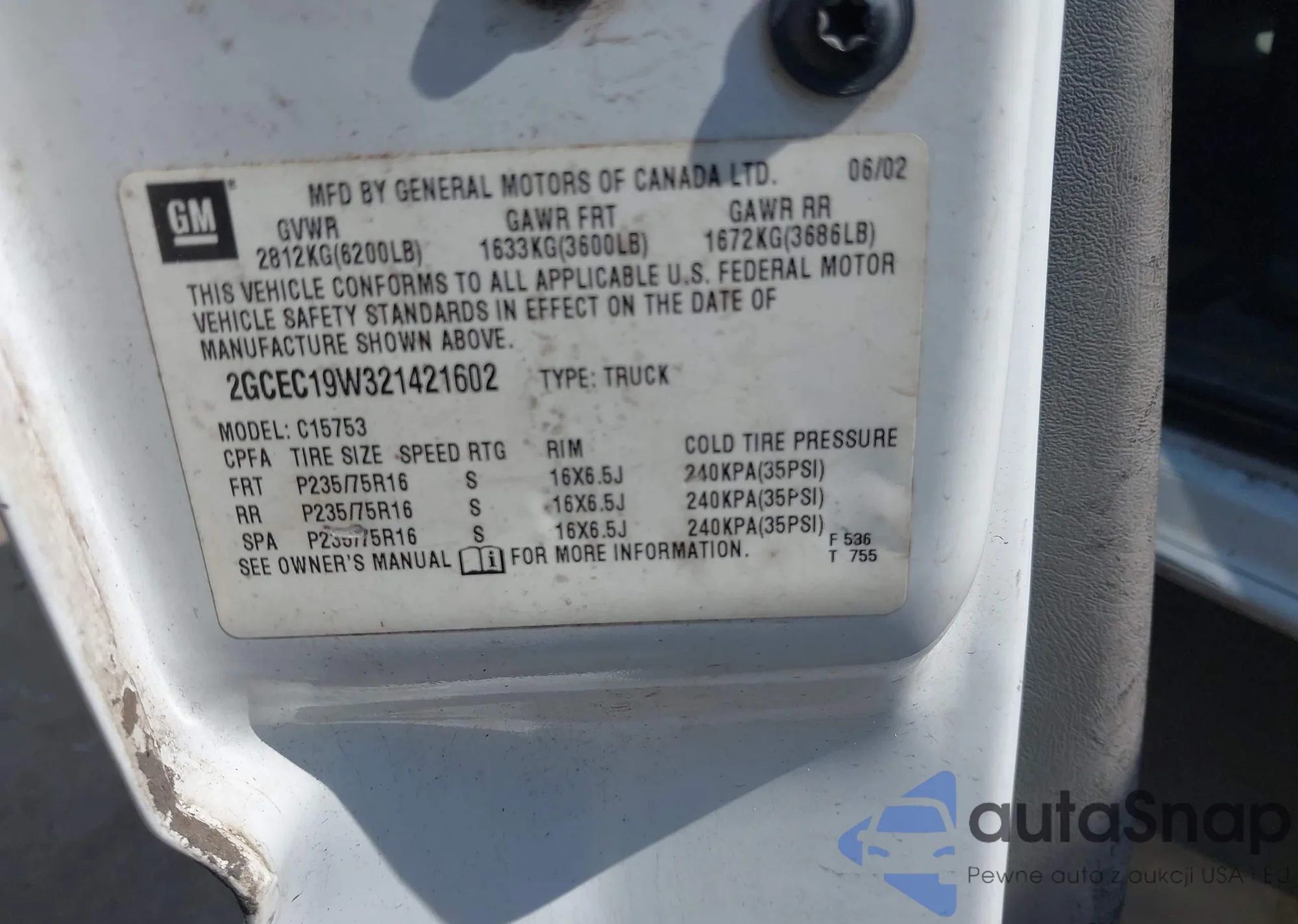 • VIN 2GCEC19W321421602