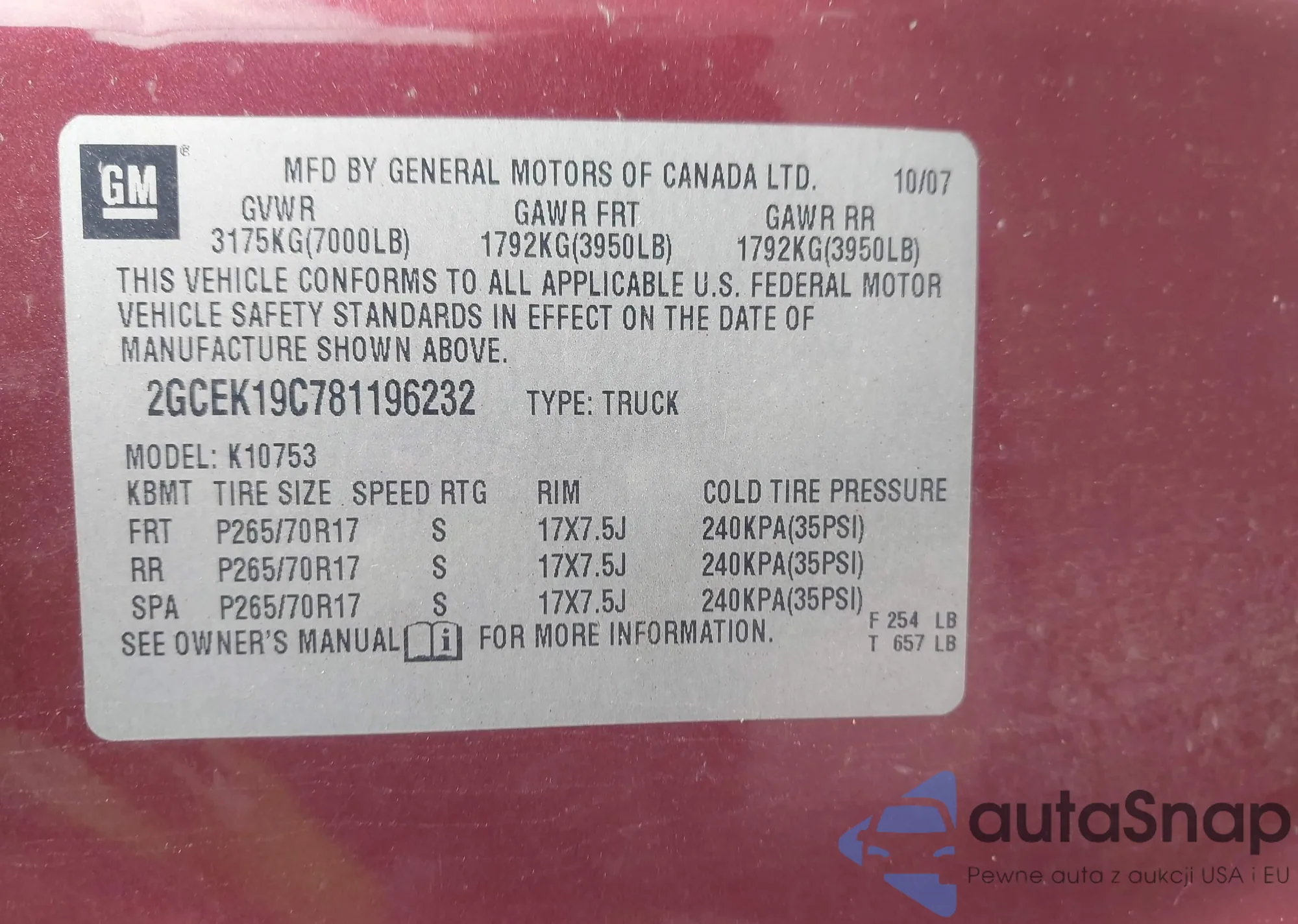 LOT: 44577314 VIN: 1GCPKSE70CF117220