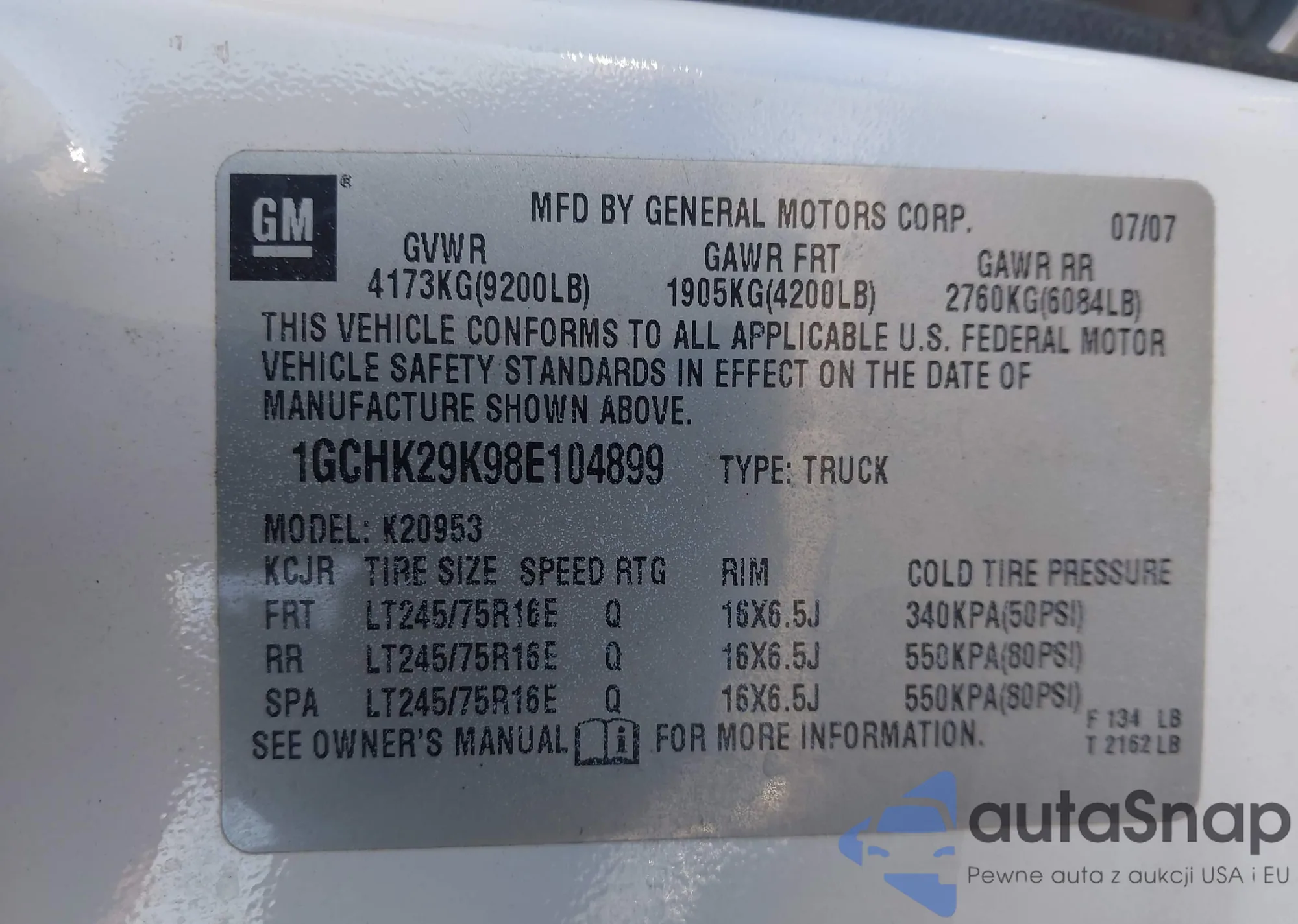 LOT: 43929848 VIN: 1GCHK23688F219550