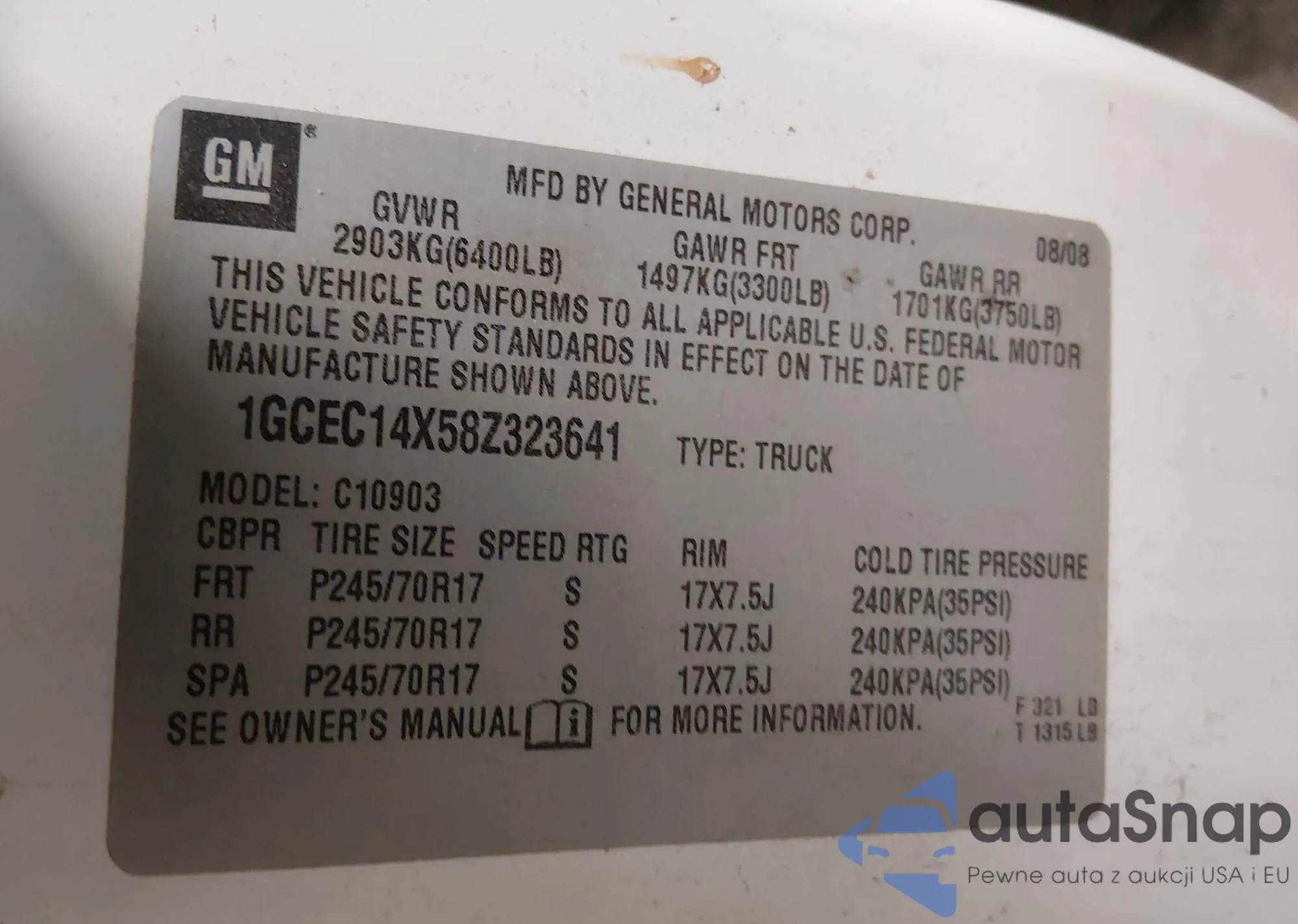 • VIN 1GCEC14X58Z323641