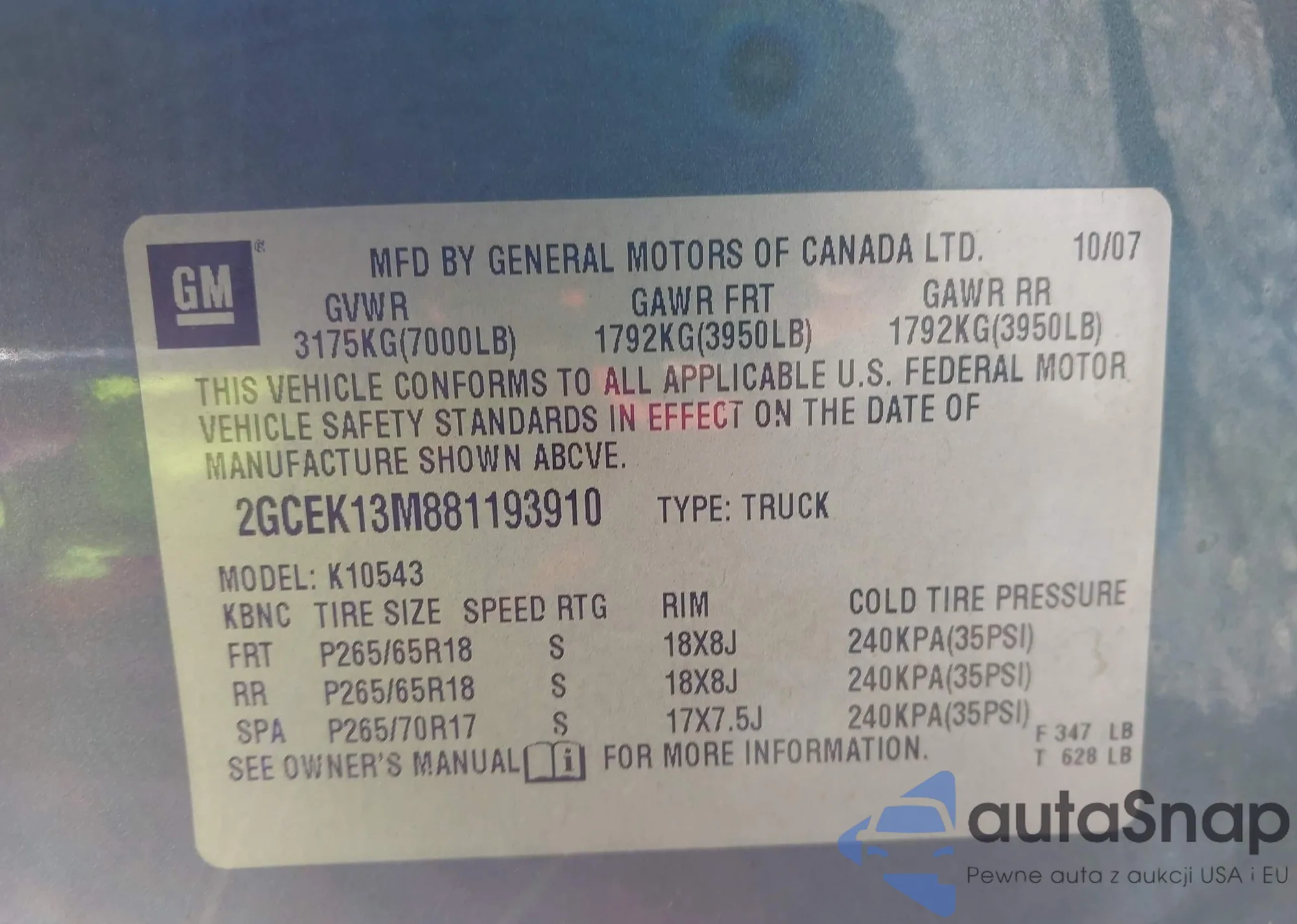 • VIN 2GCEK13M881193910