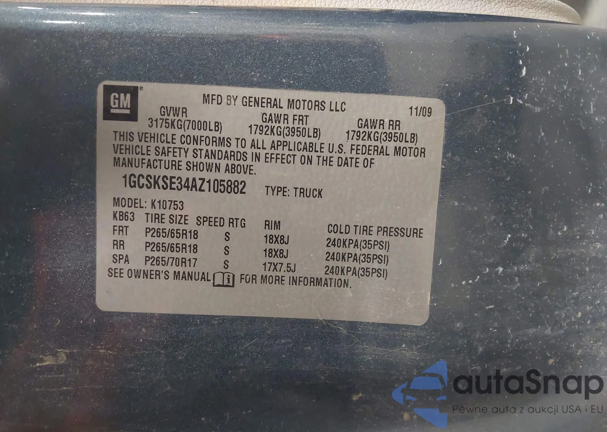 LOT: 44272169 VIN: 1GCSKSE34AZ105882