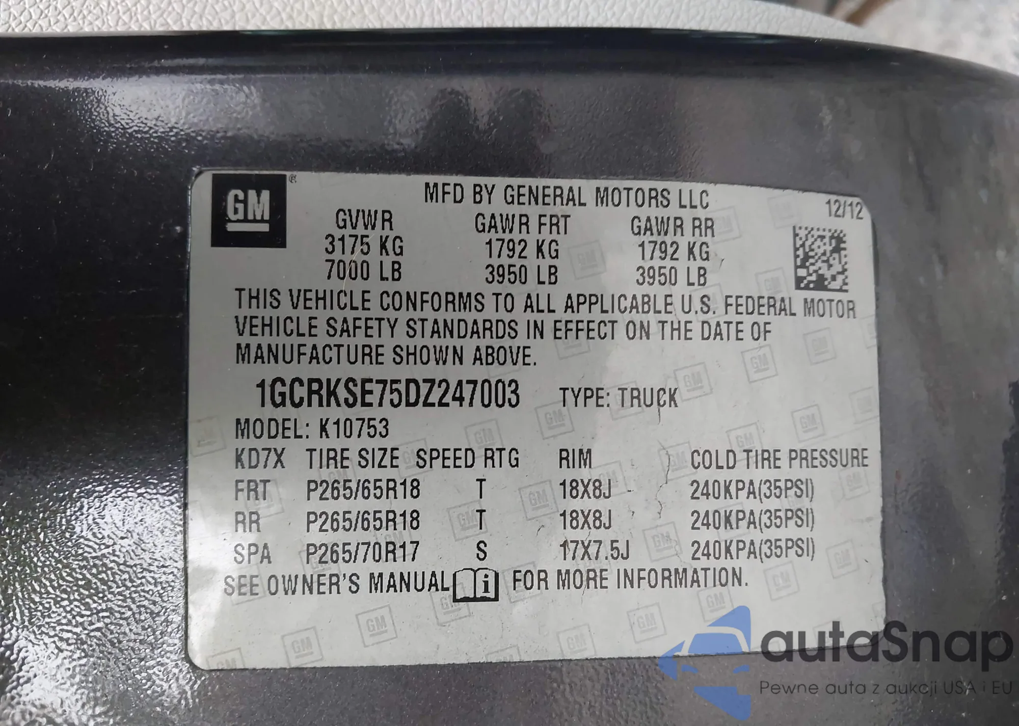 LOT: 73087775 VIN: 3GCPKTE76CG170153
