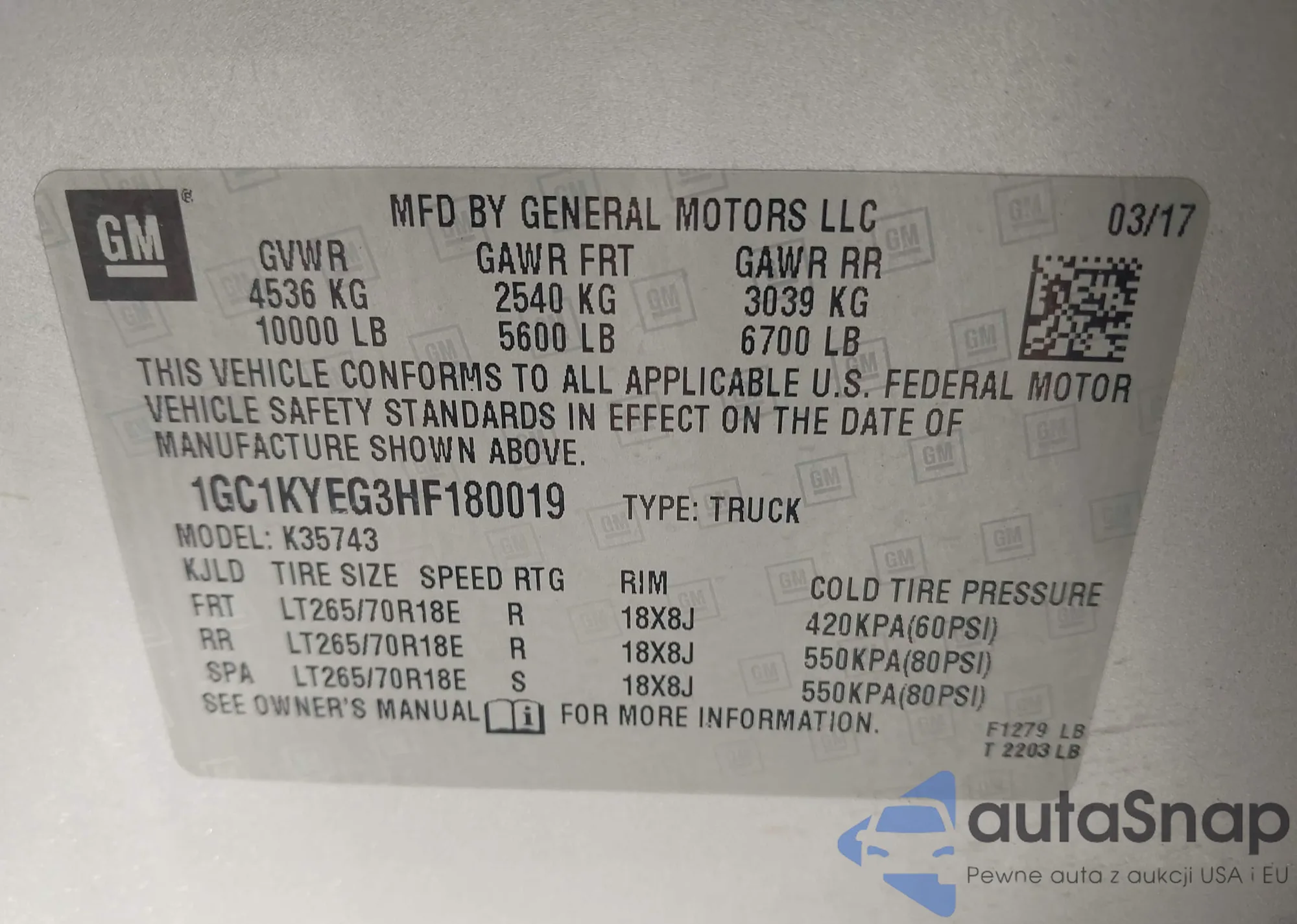 • VIN 1GC1KYEG3HF180019